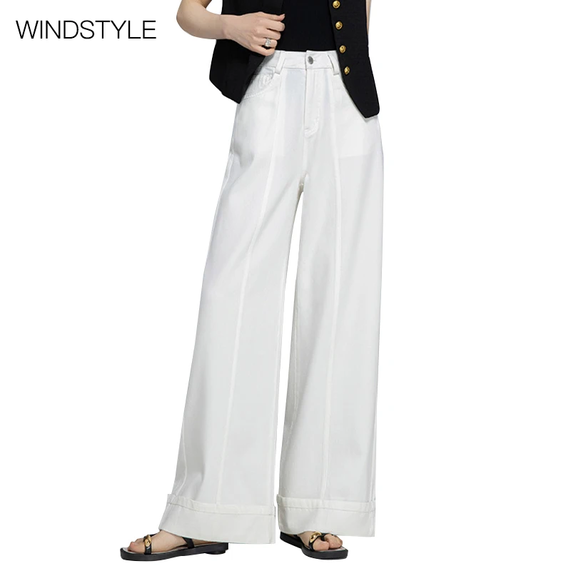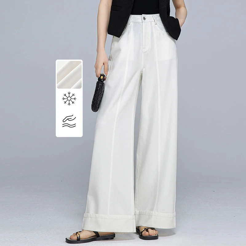 Tentel Women's Summer Cotton SAG Wide Leg Pants Casual Straight Style Thin & Loose-Fitting Formal Look