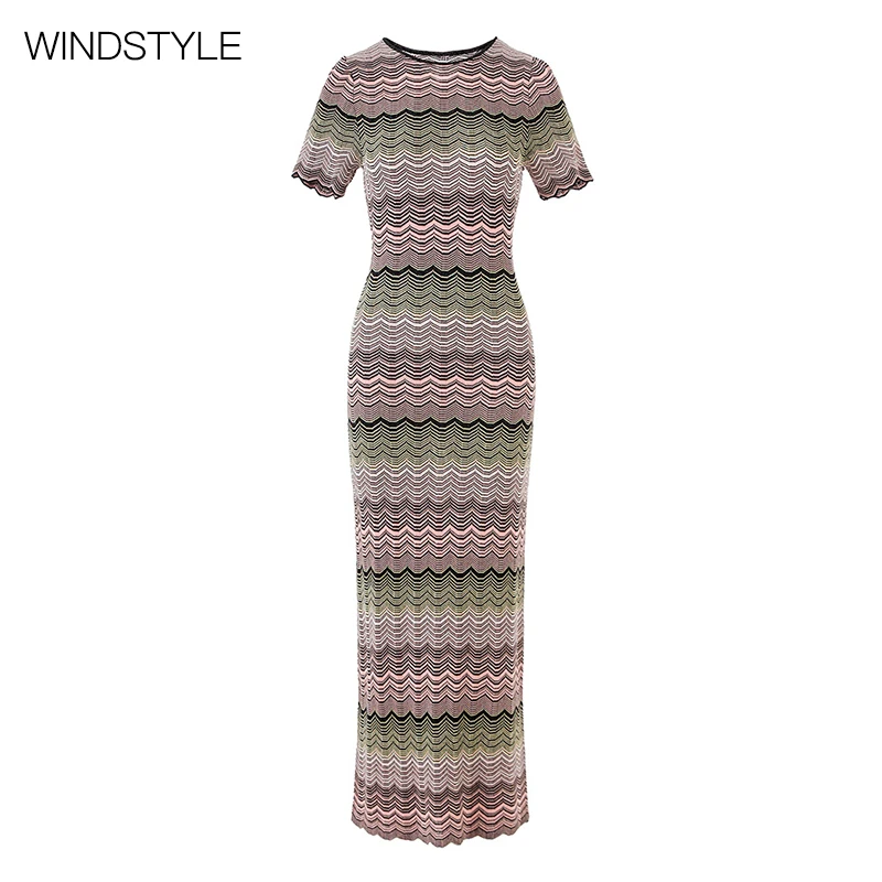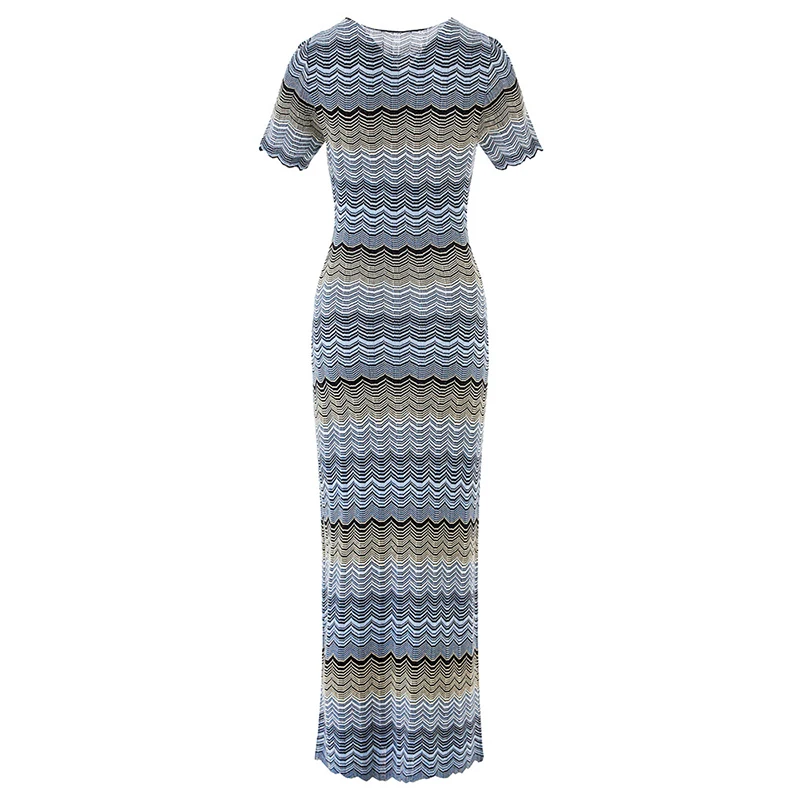Custom Ladies Slim Fit Short Sleeve Knit Dress Gradient Stitching High Elastic Breathable Summer Knee-Length Daily Wear