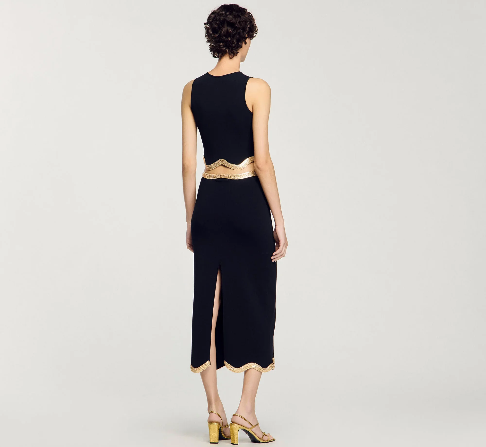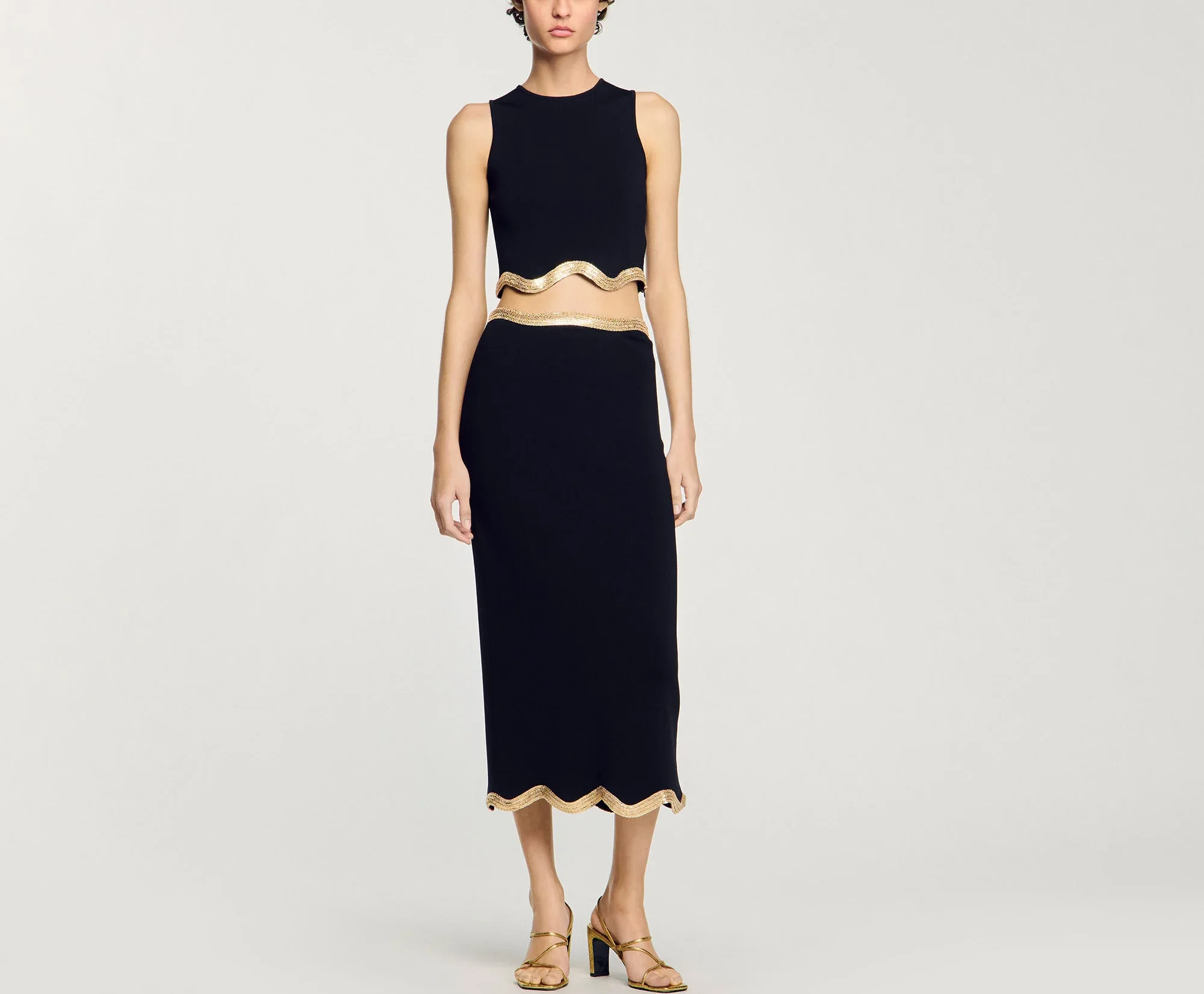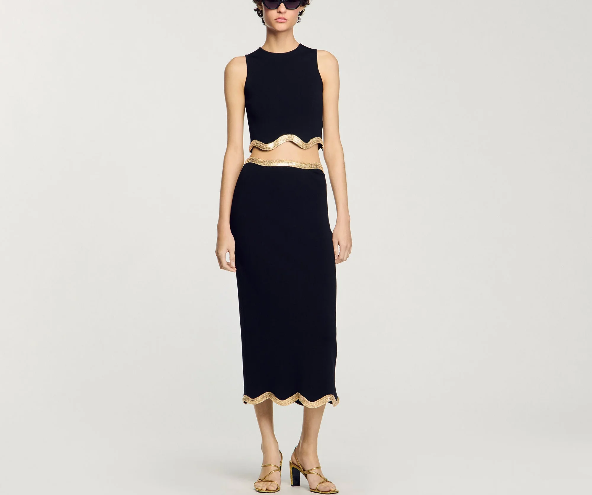 ZYHT 21938 Black Velvet Mini Dress Square Neck Long Puff Sleeves with Pearl Trim & Crystal Dess Flared Scalloped Hem Dresses