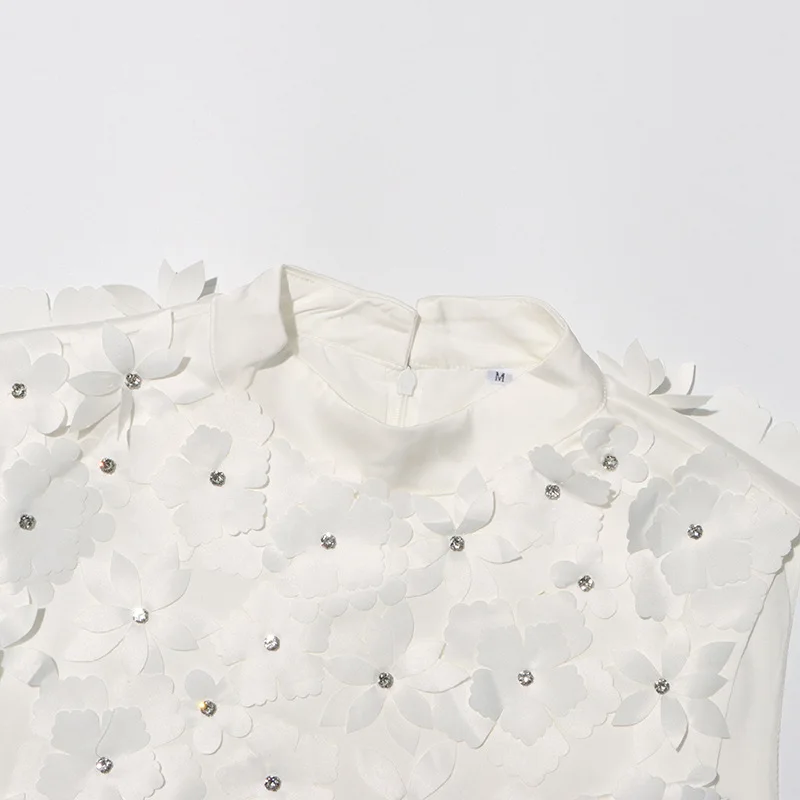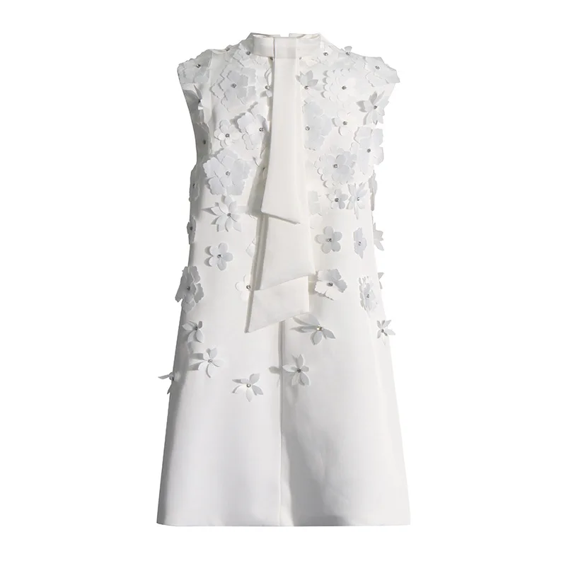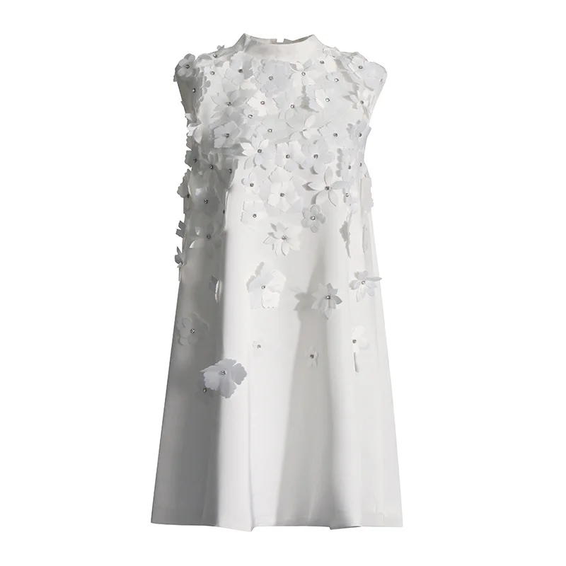 OEM/ODM Women's Summer Sleeveless Dress with Three-Dimensional Floral Bead Design Loose Skirt & Stand Collar