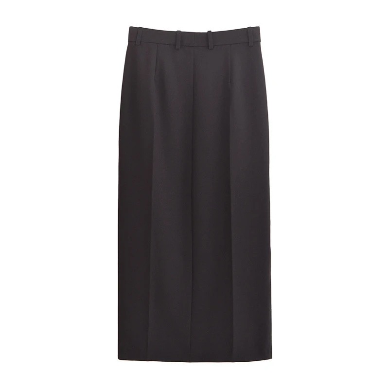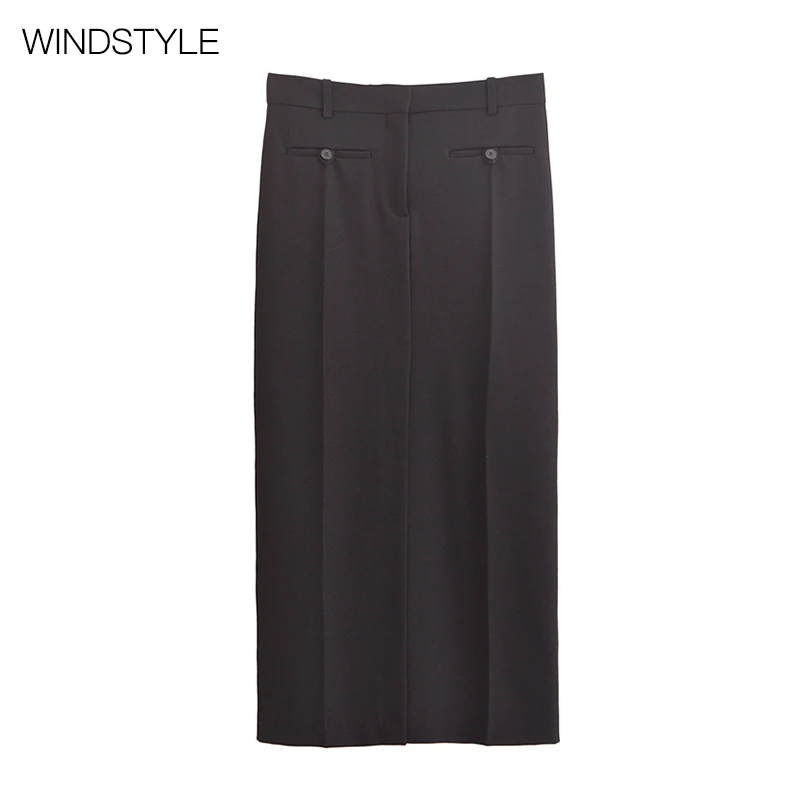 Ladies' New Autumn Fashion Breathable PU Split Straight Skirt with Button Decoration Formal Style