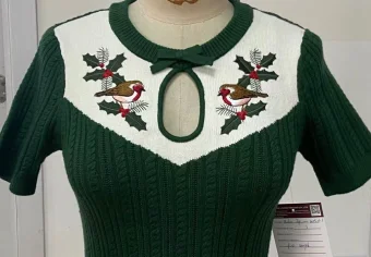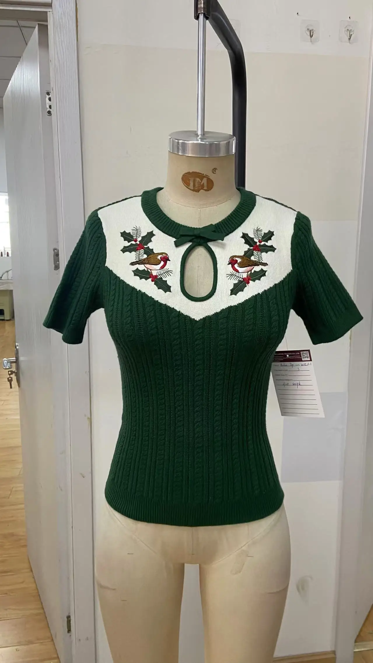 Women's Retro T-shirt, Knitted Bird Embroidery T-shirt, Breathable