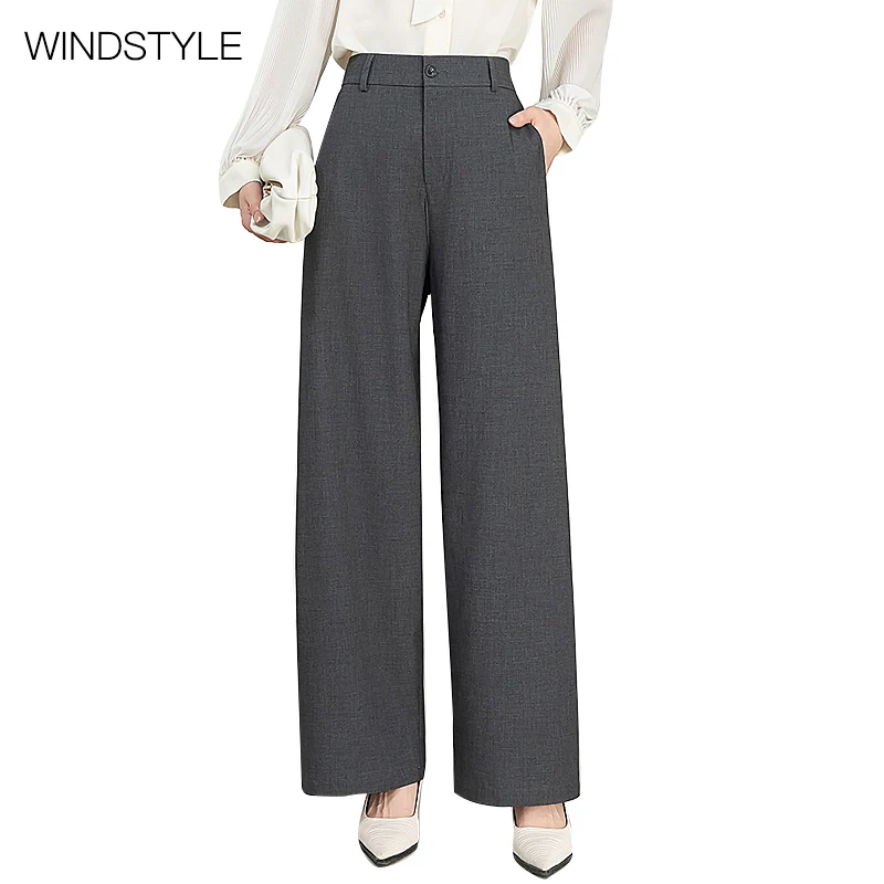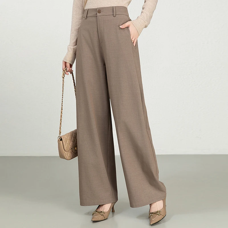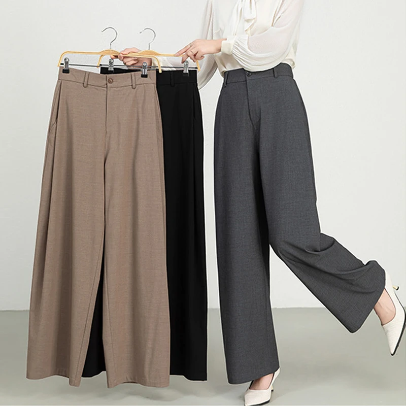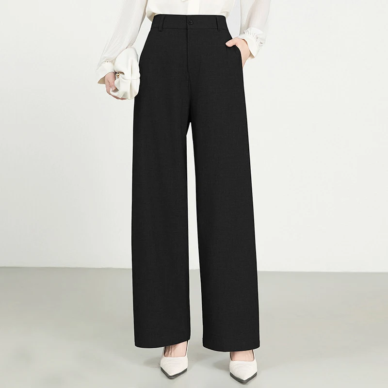 Women's Cotton and Linen High Waist Suit Pants New Version Straight Wide Leg with Formal Style