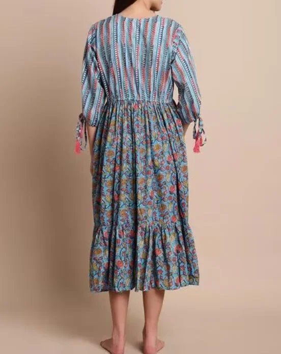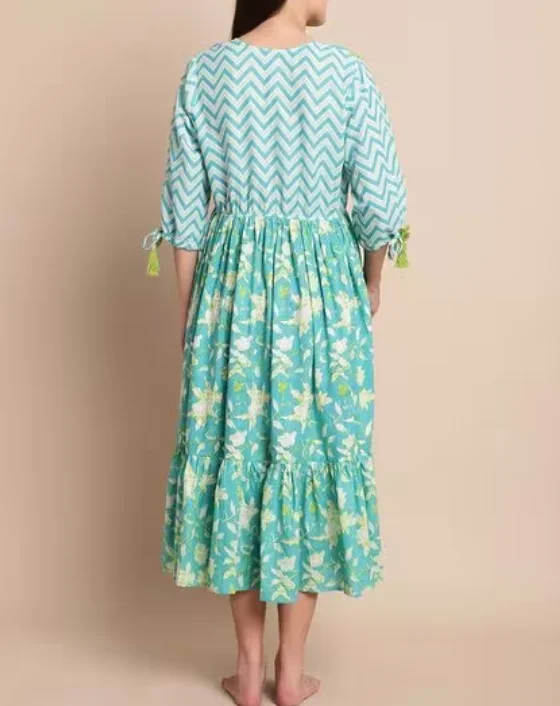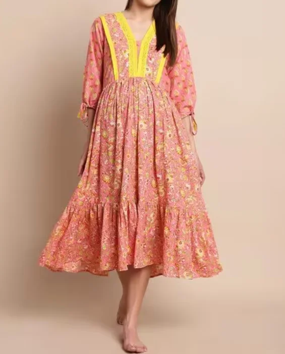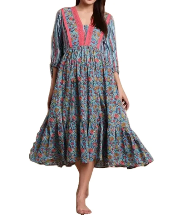Wholesale Fashion Floral Printed Maternity Robe Hot Sale Malaysia Clothing South East Asia Style Ruffle V-neck A-Line Midi Women