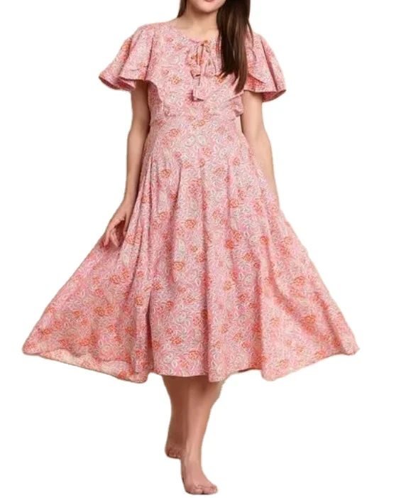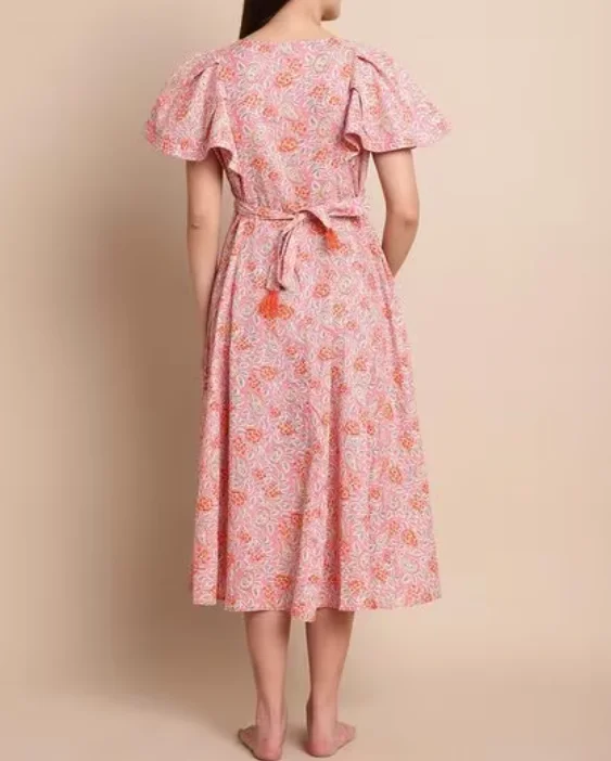 Fashion Chiffon Floral Printed Maternity Fit & Flare Dress Ruffle Sleeve Summer Beach Malaysia Dress Women