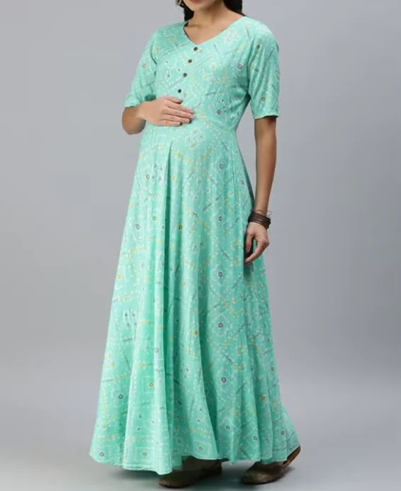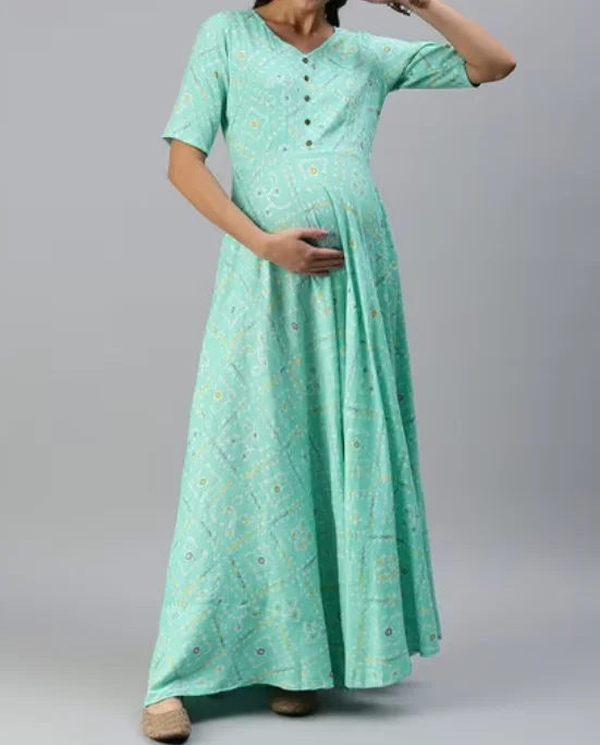 High Quality Custom Made Block Print Maternity Dress Elegant Pregnancy Lady Maxi Dress for Women