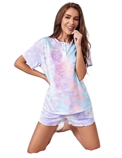 Tie Dye Pajamas Set Women's Lounge Wear Sleepwear 2 Piece Ladies Sets