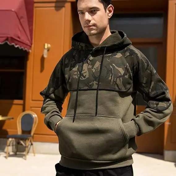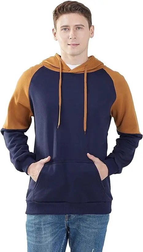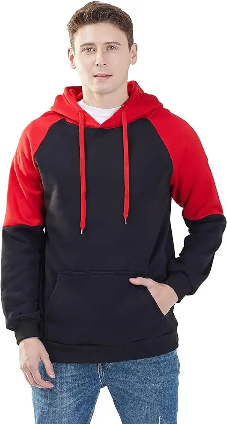 Men's Contrast Color Pullover Fleece Hoodie Cozy Sport Outwear Casual Sweatshirt Warm Polyester/Cotton 330g Breathable Hoodie