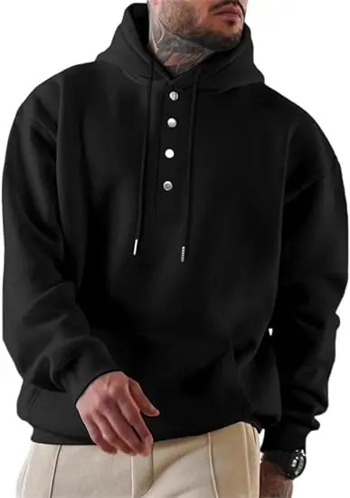Mens 2023 Cotton Hooded Drawstring Pullover Hoodie with Pocket Fleece Eco-Friendly Winter Casual Long Sleeve