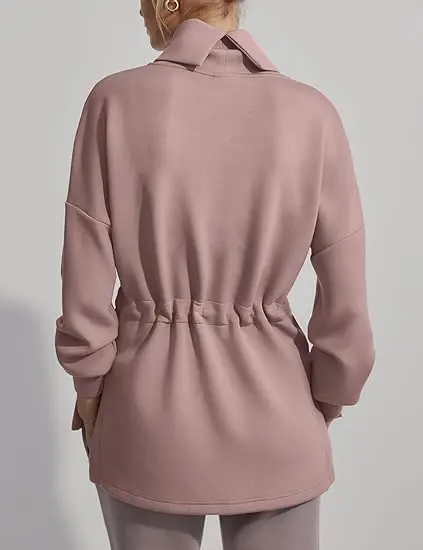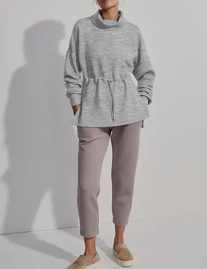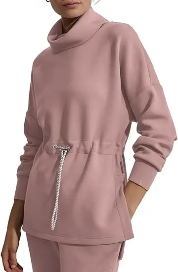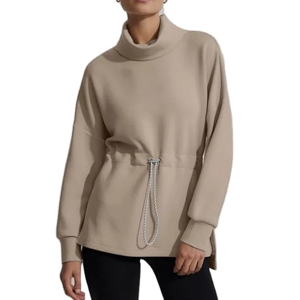 Women's Turtleneck Oversize Long Sleeve Pullover Sweatshirt Side Slit Soft Drawstring Waist Eco-Friendly Breathable Knitted
