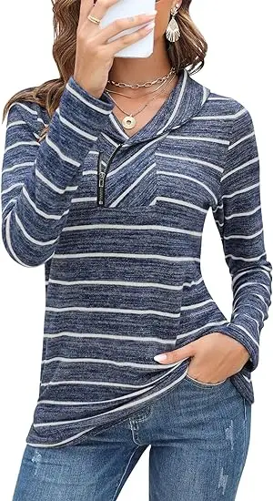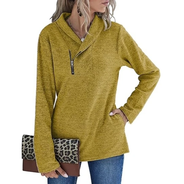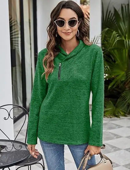 Women's Cowl Neck Sweatshirt Casual Cute Long Sleeve Zip Pullover with Pockets Polyester/Cotton