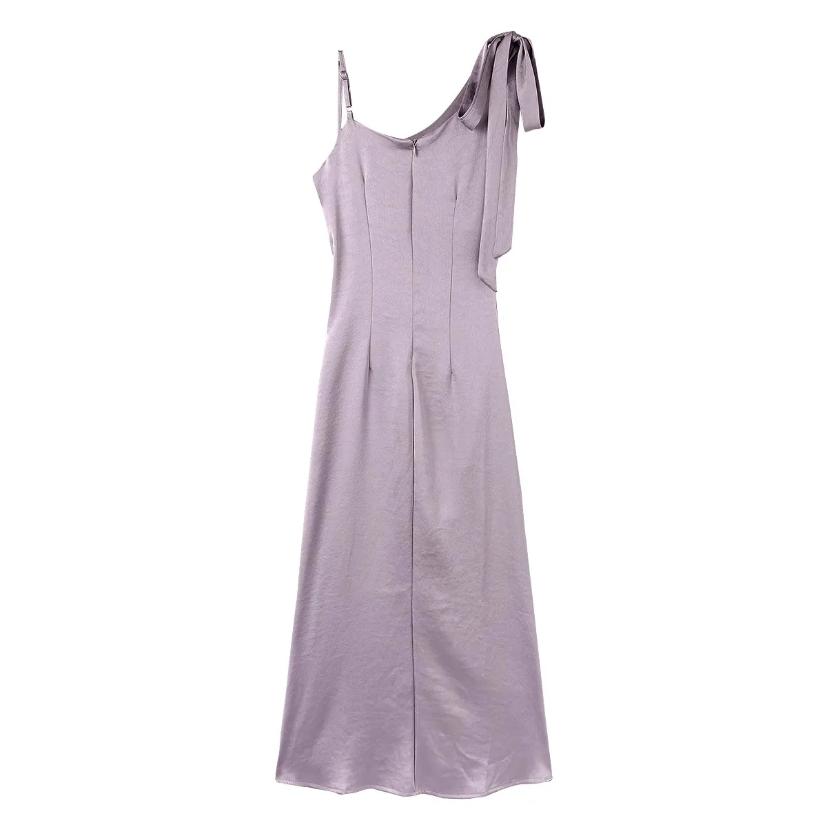 Women's Summer Maxi Satin Spaghetti Strap Elegant Fit and Flare High Waist Draped Eco-Friendly Daily Wear Dress