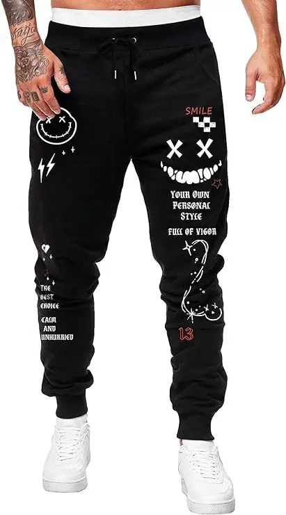 Men's Graphic Sweatpants Cartoon Print Drawstring Waist Athletic Running Gym Jogger Pants Polyester/Cotton Breathable