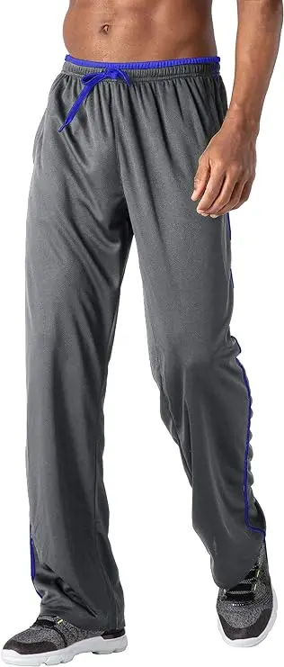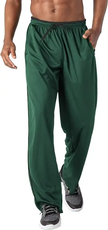Men's Jogger Sweatpants Zipper Pockets Breathable Running Gym Workout Athletic Mesh Pants Open Bottom
