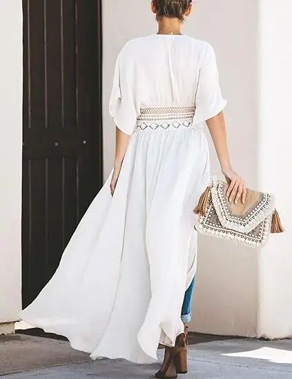 Womens Long Lace Cover up Sheer Bikini Coverups Kimono Tie Front Bathing Suit Swimsuit Beachwear Dresses