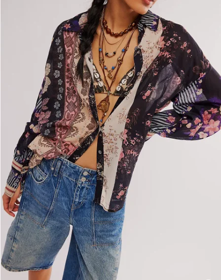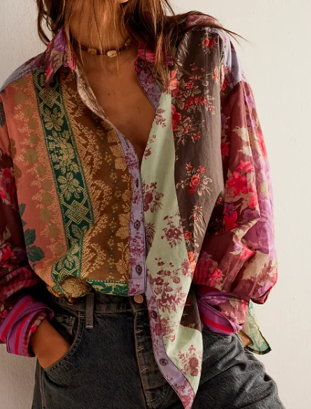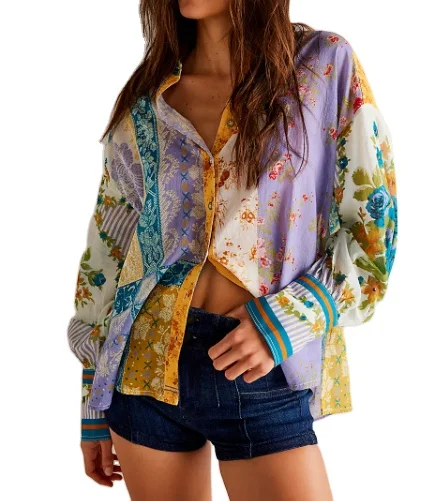 Women's Fashion Trendy Flower Patch Top Multiple Colors Floral Shirt 100% Polyester Waterproof Factory Wholesale Custom Fancy