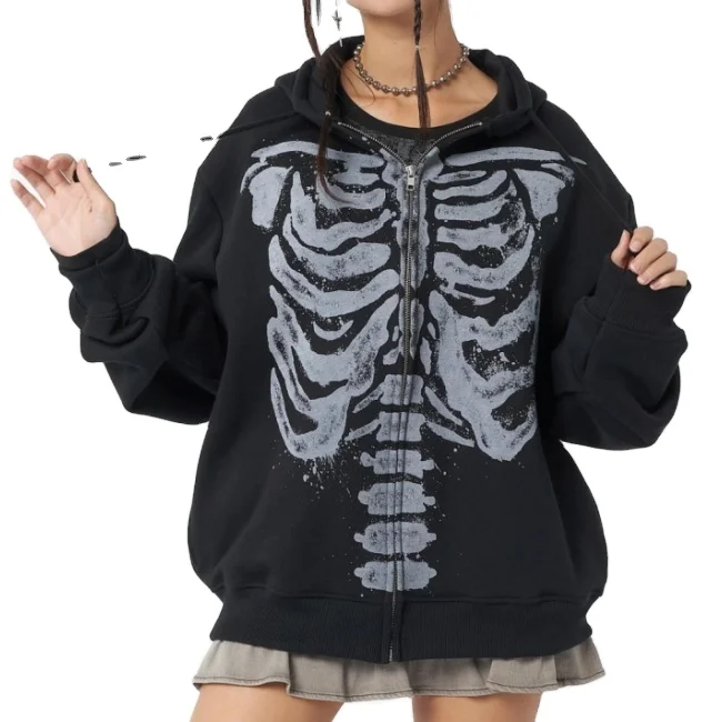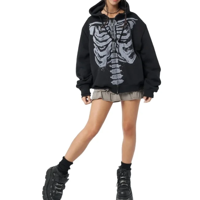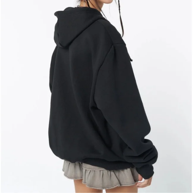 Fashion New Arrival Women's Hoodie Zipper Sweatshirt Hoody Custom Print Sports Wear Oversized Black Terry Fabric Waterproof