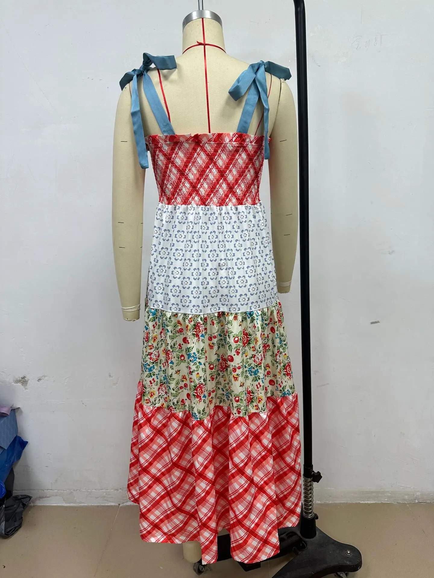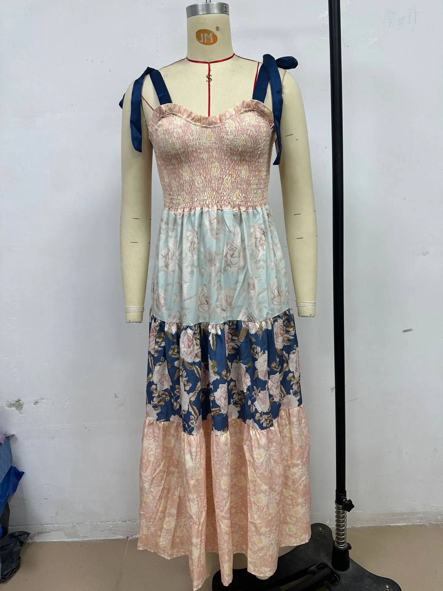 2026 Summer New Style French Fashion Sweet Ruffles Woven Washable Fitted Women's Patchwork Printed Strap Dress in Stock