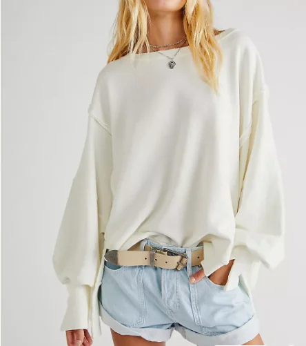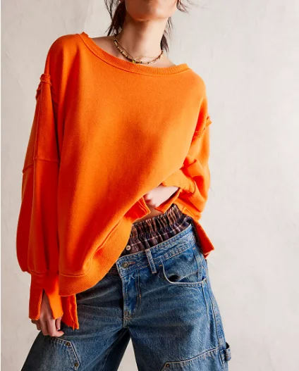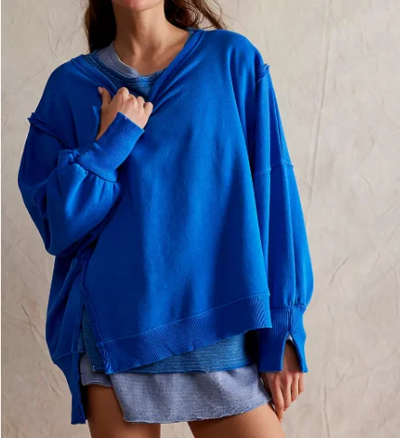 New Spring Design Women's Oversized Classic Street Wear Terry Fabric Waterproof Raw Stitching Look Side Slit Pullover Sweatshirt