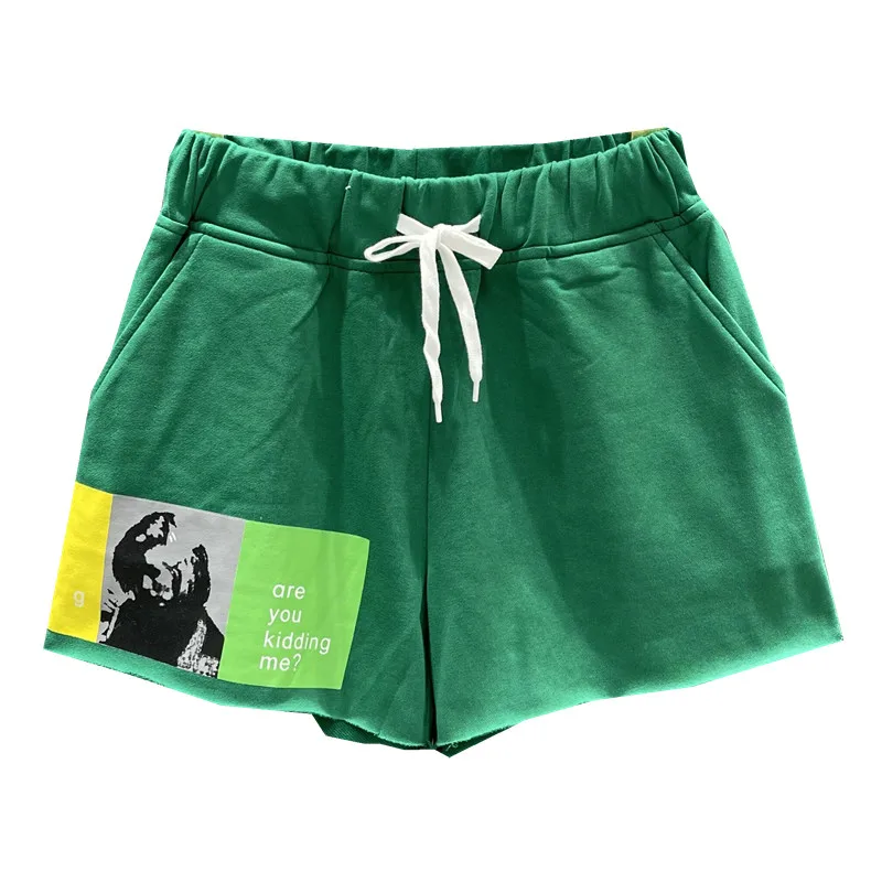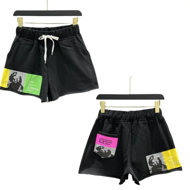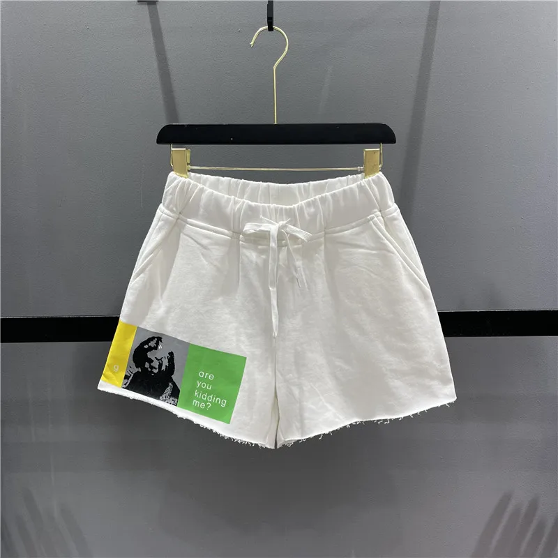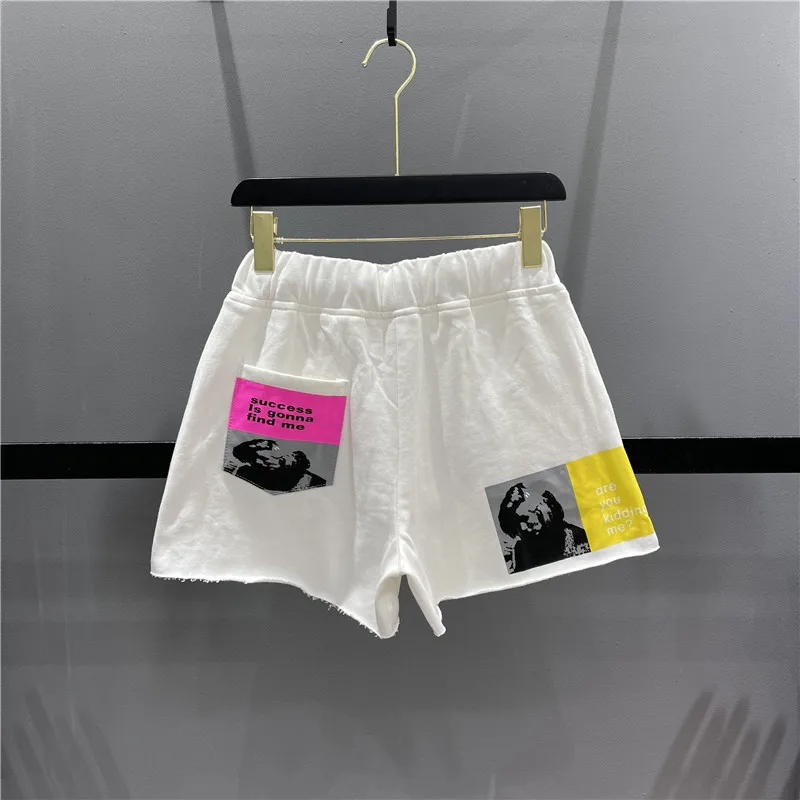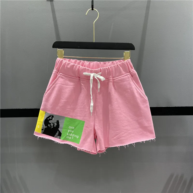 New Arrival Fashion Trendy Terry Fabric Breathable Waterproof Mid Rise Shorts Sports Casual Candy Color Cute Print Pocket Women