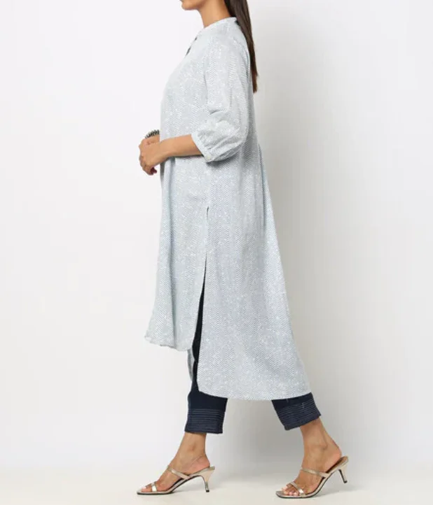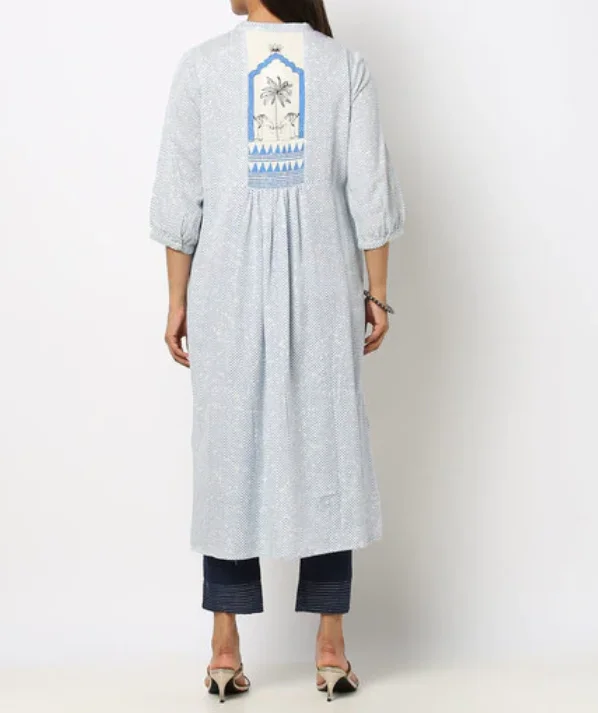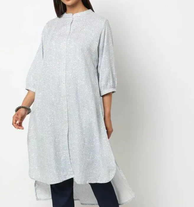 Women's Custom Islamic Geometric Pattern Balloon Sleeve Breathable Quick Dry Long Shirt Printed High-Low Straight Kurta Blouses