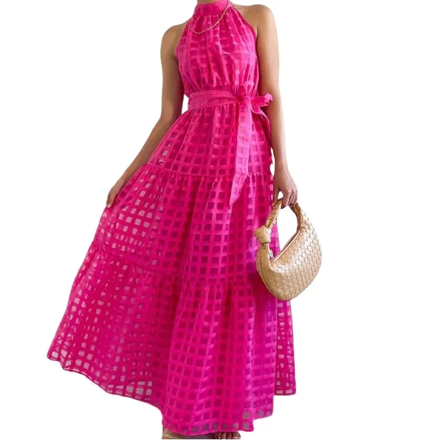 2026 Summer New Design High-end Solid Prom Dress Sleeveless Big Swing High Quality Party Dress Female Long Skirt XL