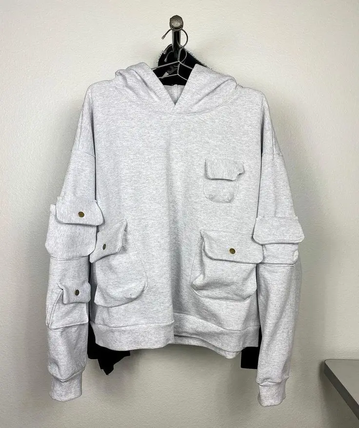 Men's Trendy Hoody Sweatshirt Multiple-Pockets Hoodie 100% Cotton Terry Fabric Heavy Weight Eco-Friendly High Street Hoodies