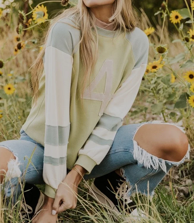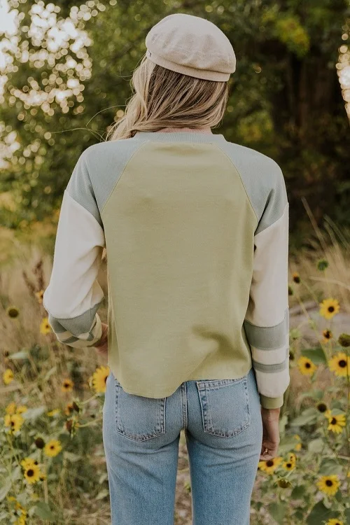 OEM Manufacturer Women's Sweatshirt Custom Color Block Sleeves Patchwork Appliques Casual Polyester/Cotton Sweatshirts