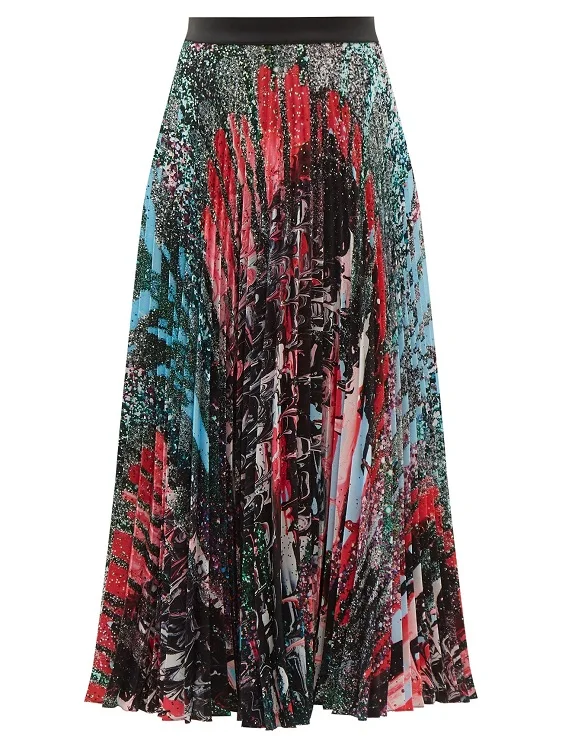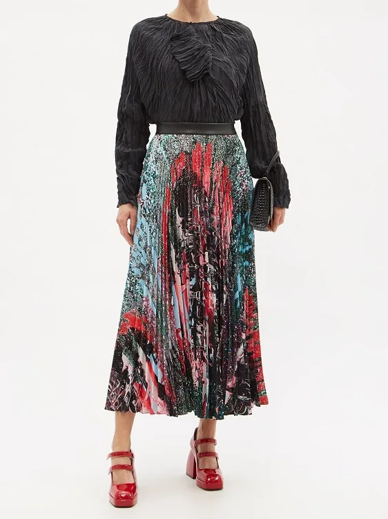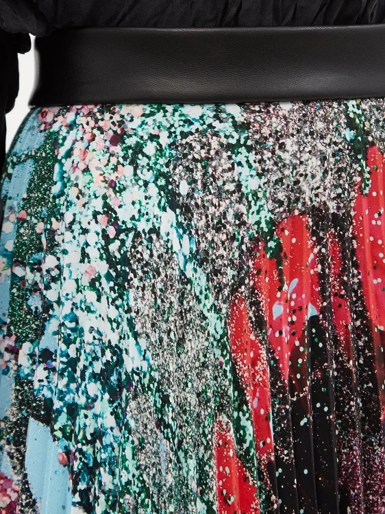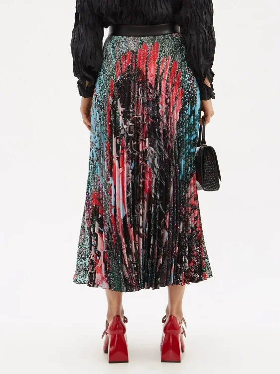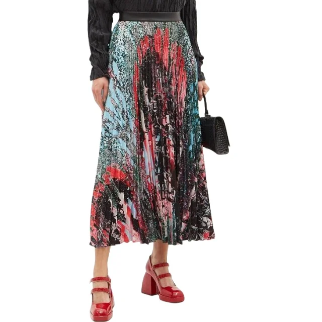 Fashion Custom Floral Pleated Skirt Elastic Waist Women's Elegant High Quality Chiffon Midi-Length Eco-Friendly All Seasons