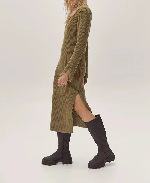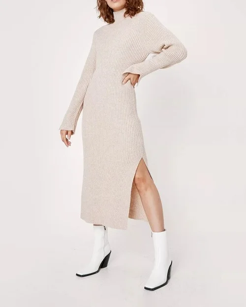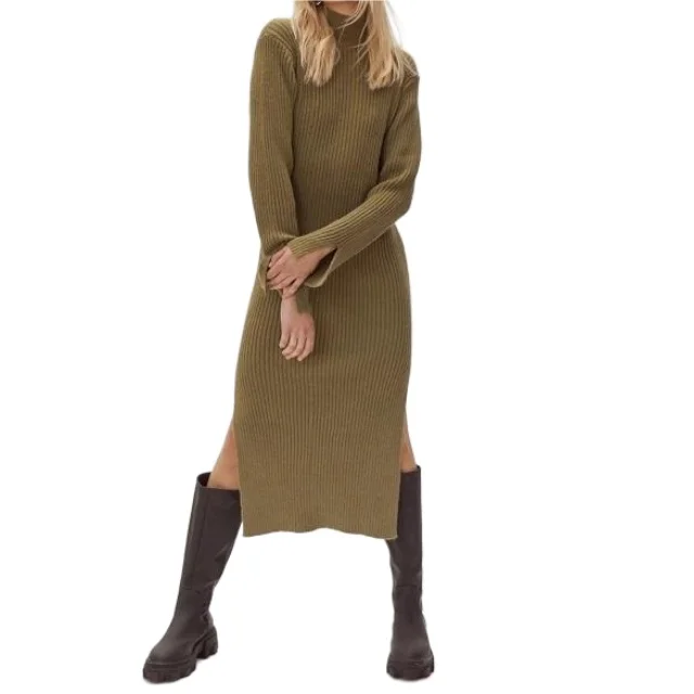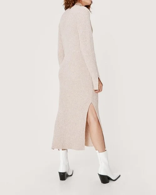 Women's Turtleneck Sweater Dress Casual Fashion Knitwear Long Dress Side Slit Knitted Sweater Dresses for Women