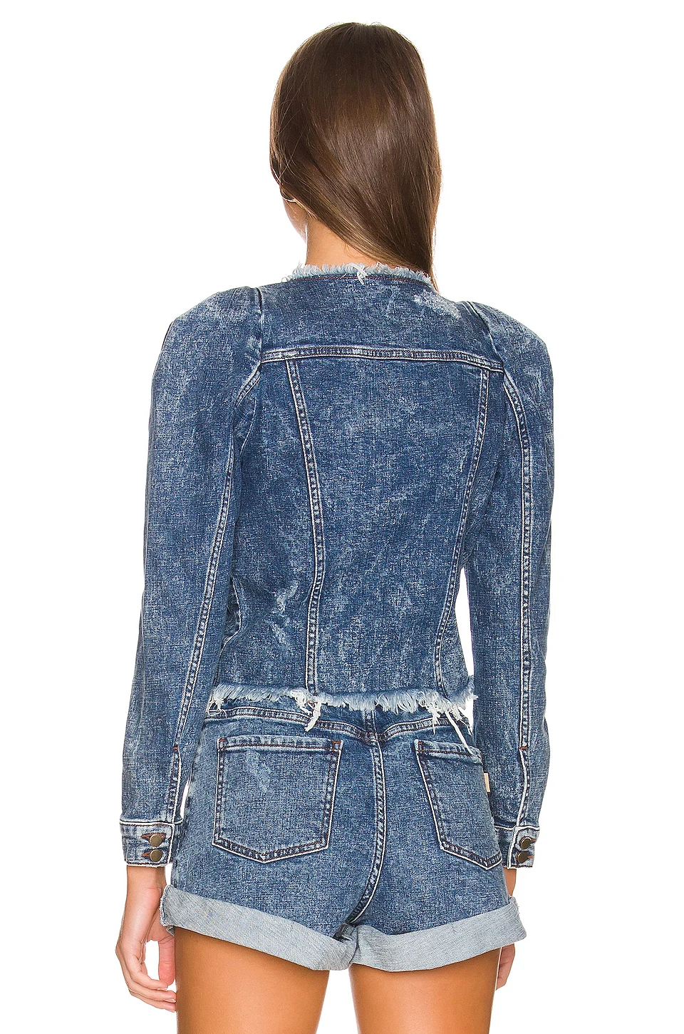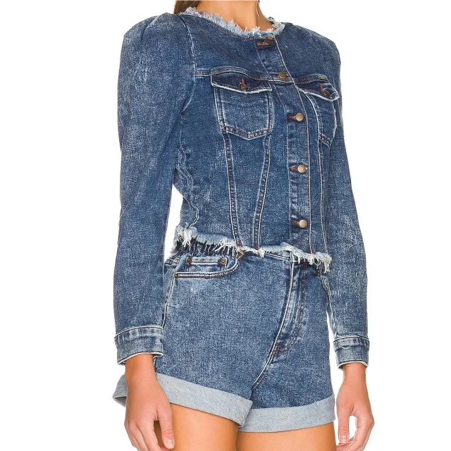 New Arrival Safari Jacket Slim Design Raw Neck Regular Sleeve Frayed Eco-Friendly Cotton Bleach Stone Wash