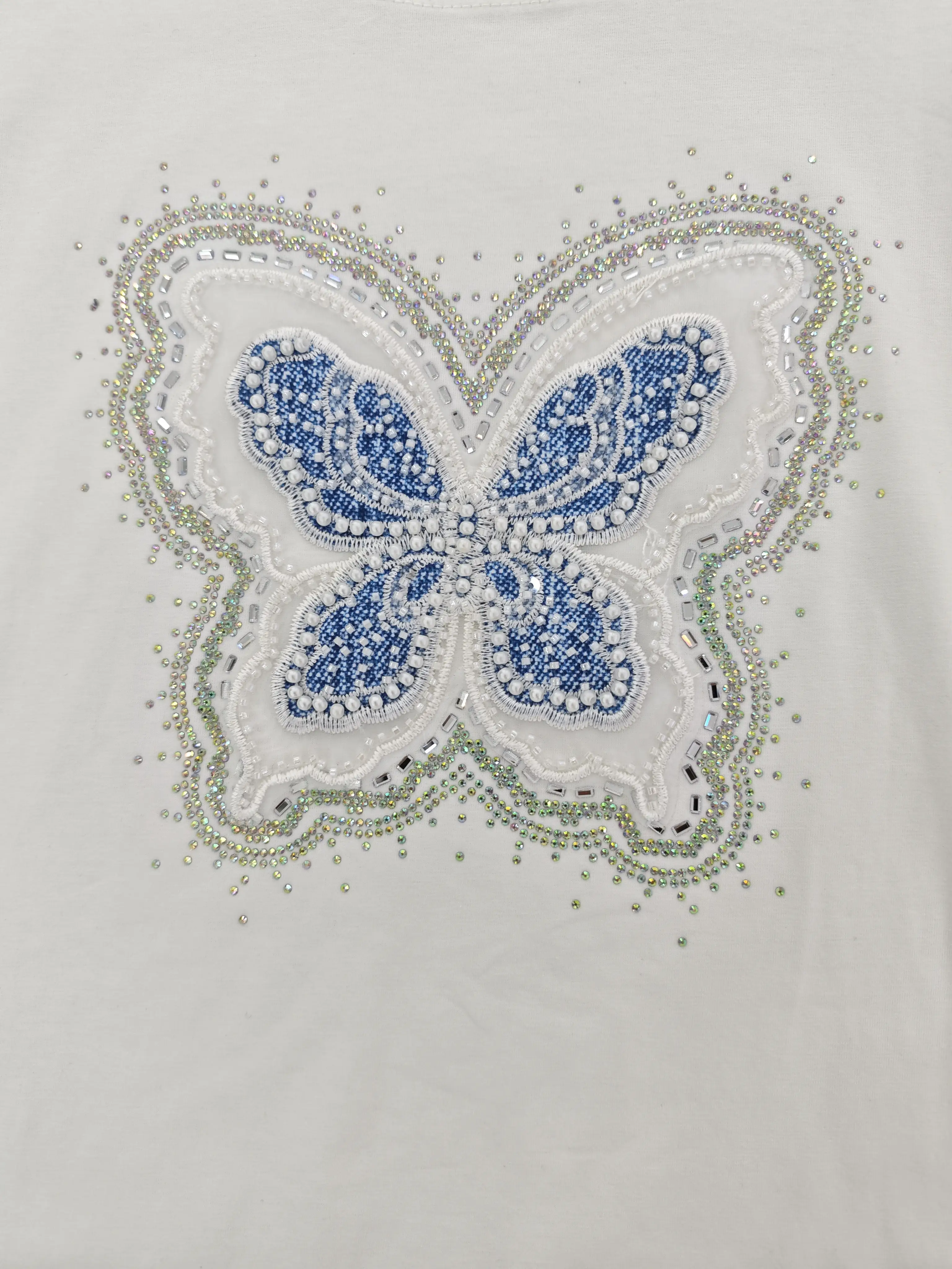LYG ODM OEM New Design Rhinestone Flowers Women's T-shirt Cotton Tshirt for Women Casual t Shirt for Women Ladies Ropa De Mujer