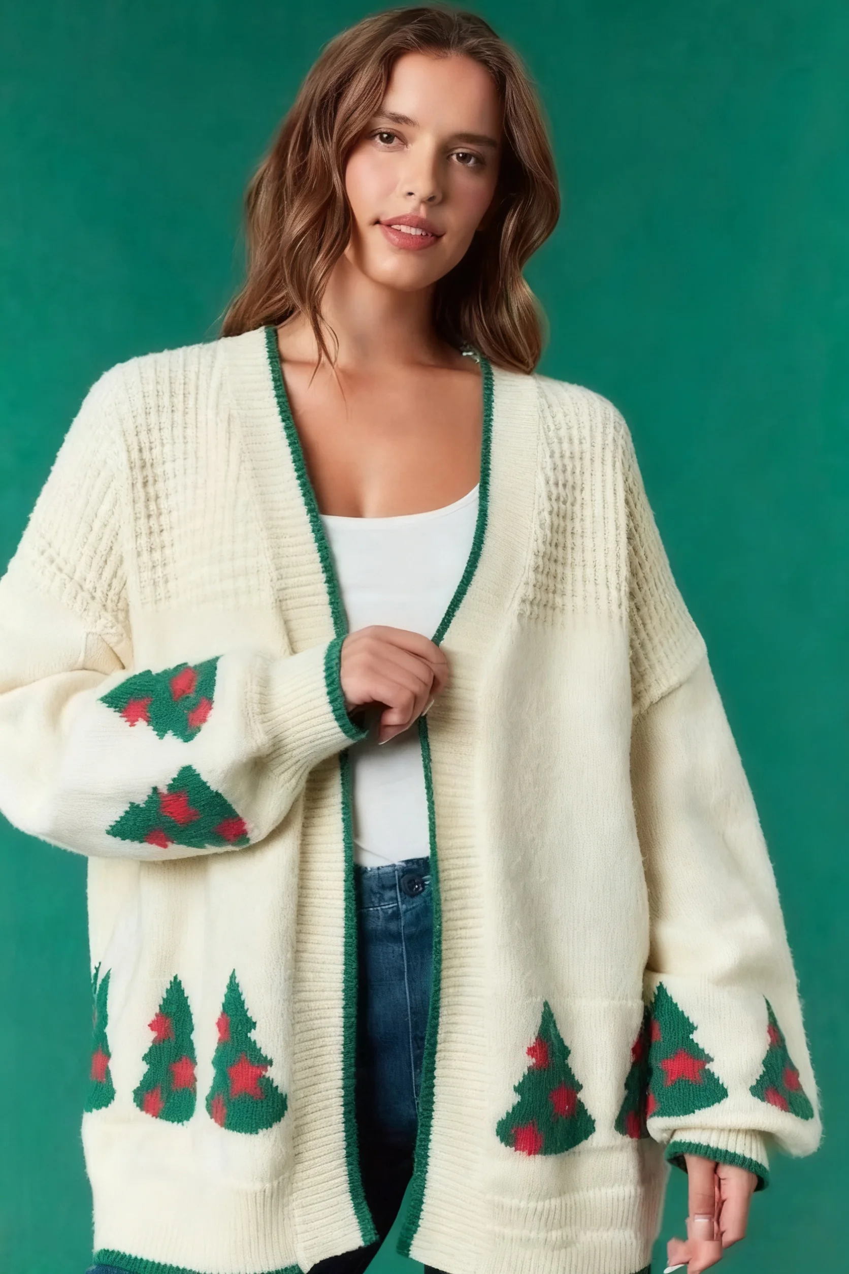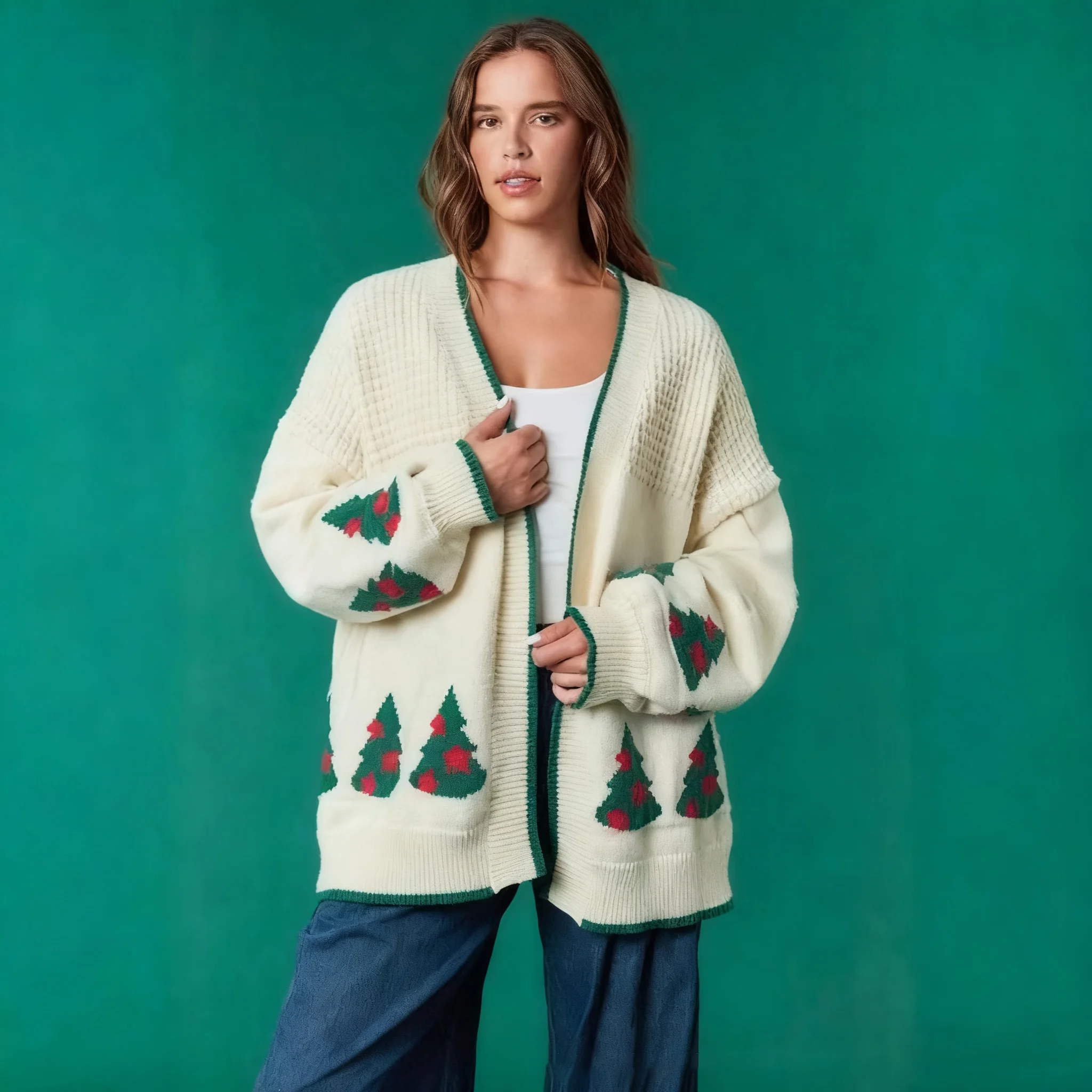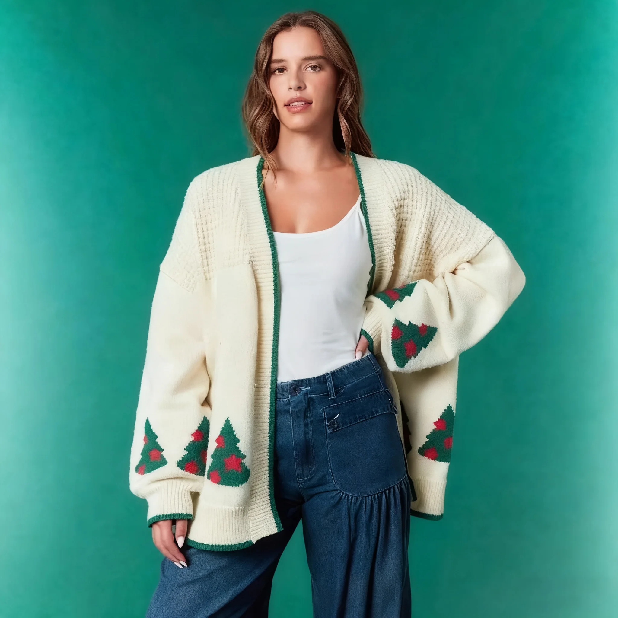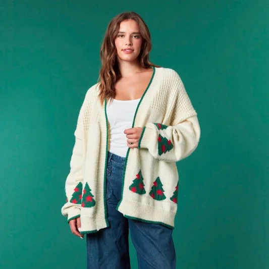 LYG New Design Women's Winter Knitted Cardigan Sweater Christmas Long Sleeve Loose Top V-Neck European American