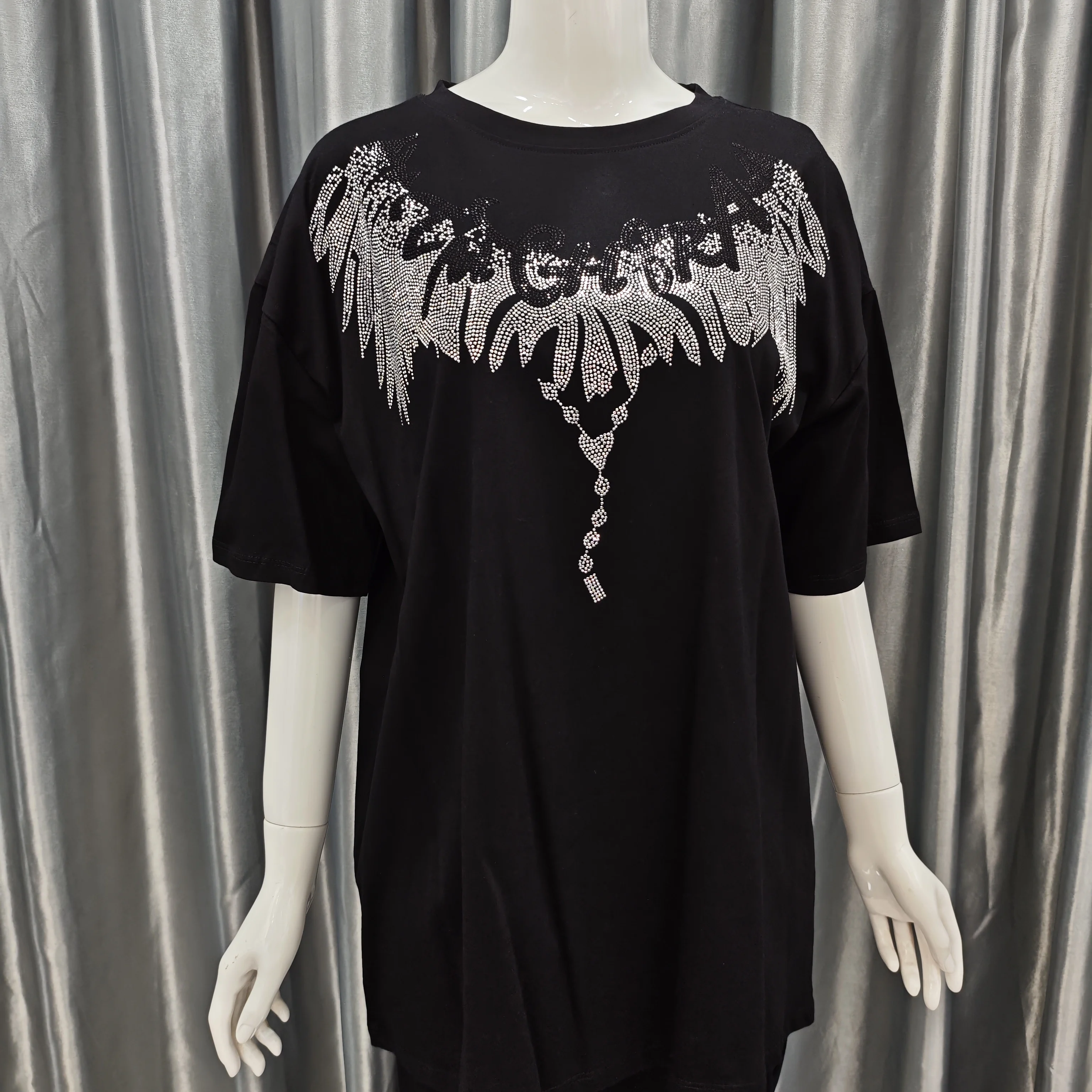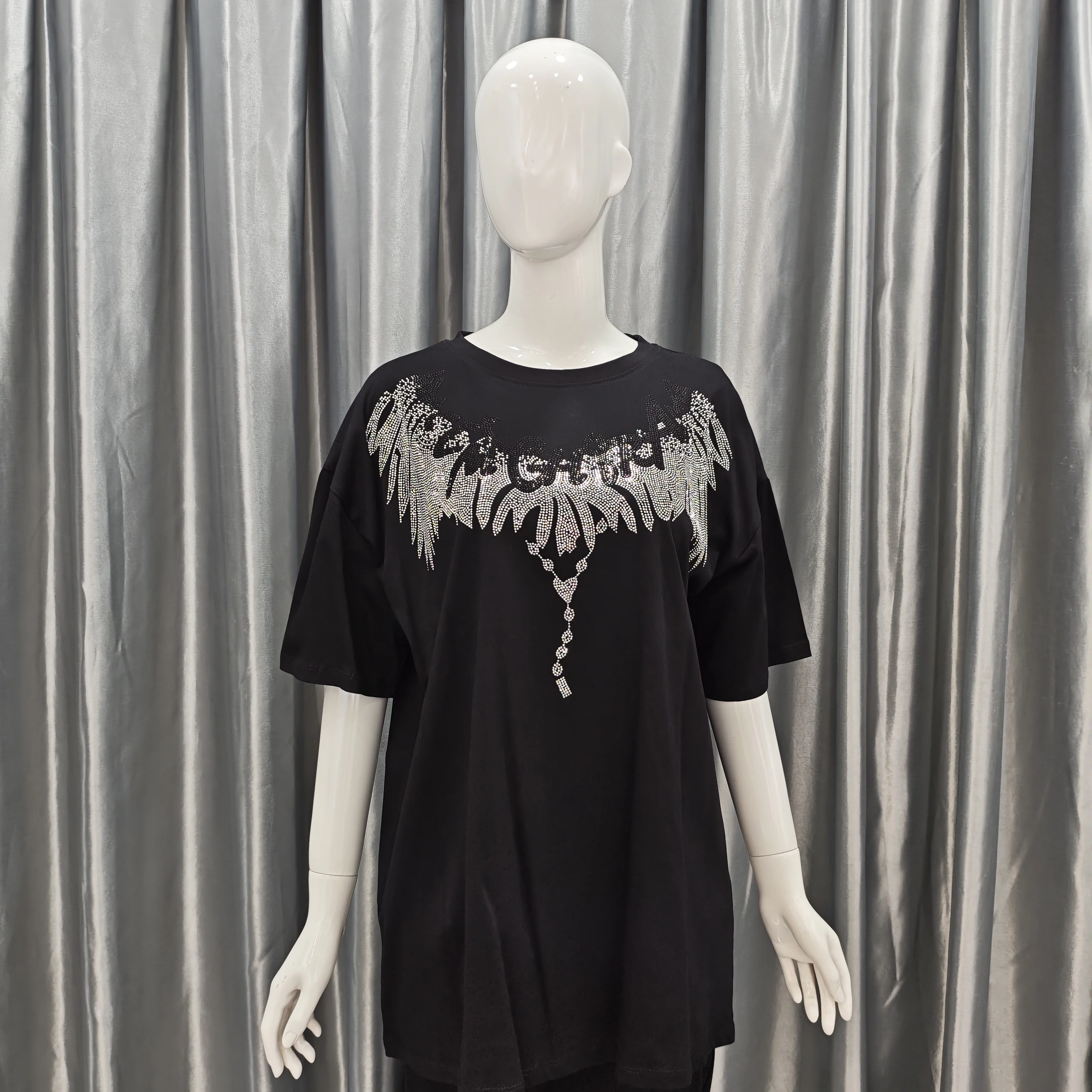2026 Bestseller Unisex Breathable Knitted T-Shirts Streetwear Crew Neck with Rhinestone Print Wholesale for Summer