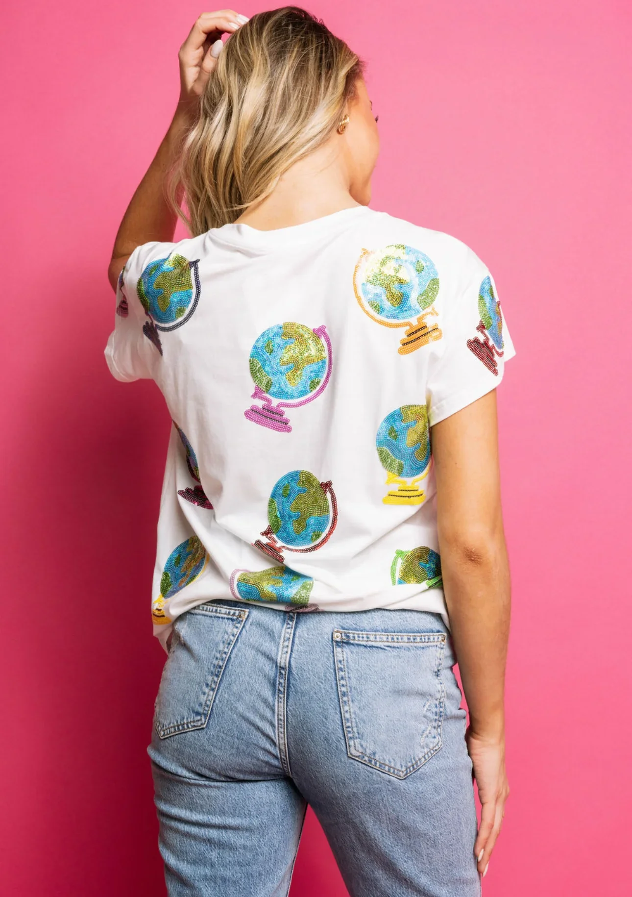 LYG Wholesale Custom New Design Multicolor Globe Sequin Embroidery Tee Shirt Crewneck Cotton Fashion T-shirt