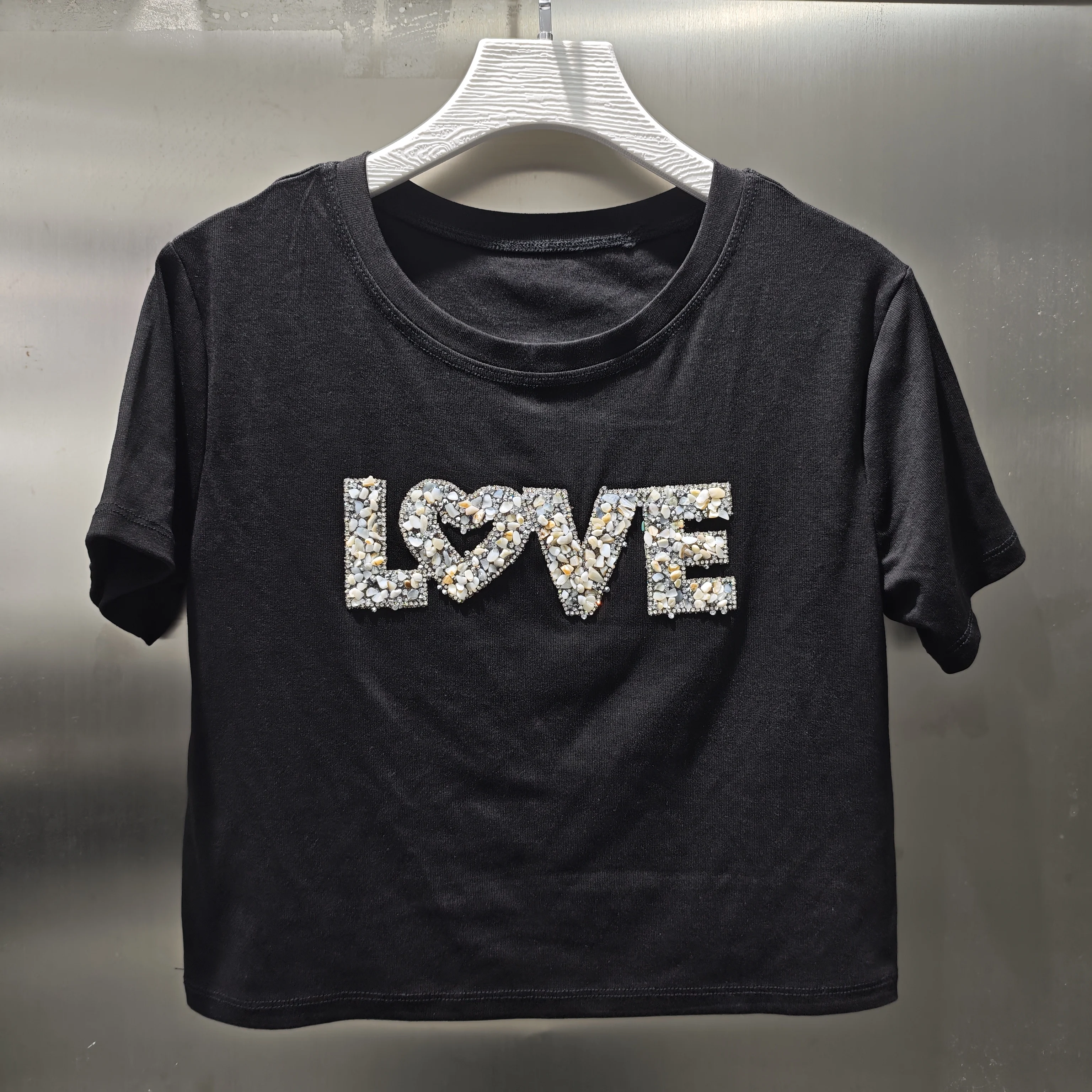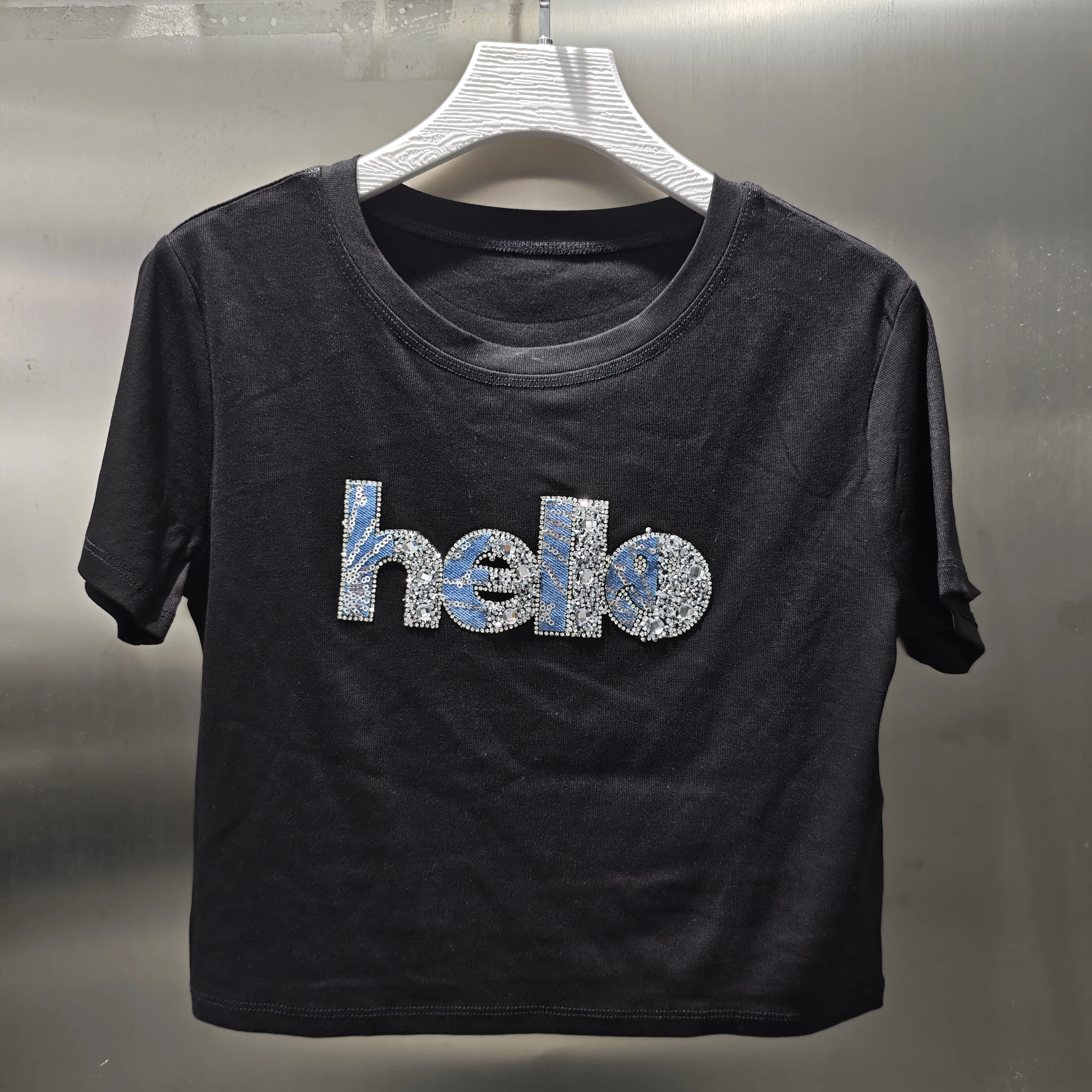 LYG New Design Custom Wholesale Graphic Slim Fit Crop Tops for Women Letter Rhinestone Sexy Crop Tops for Women Girls Crop Top