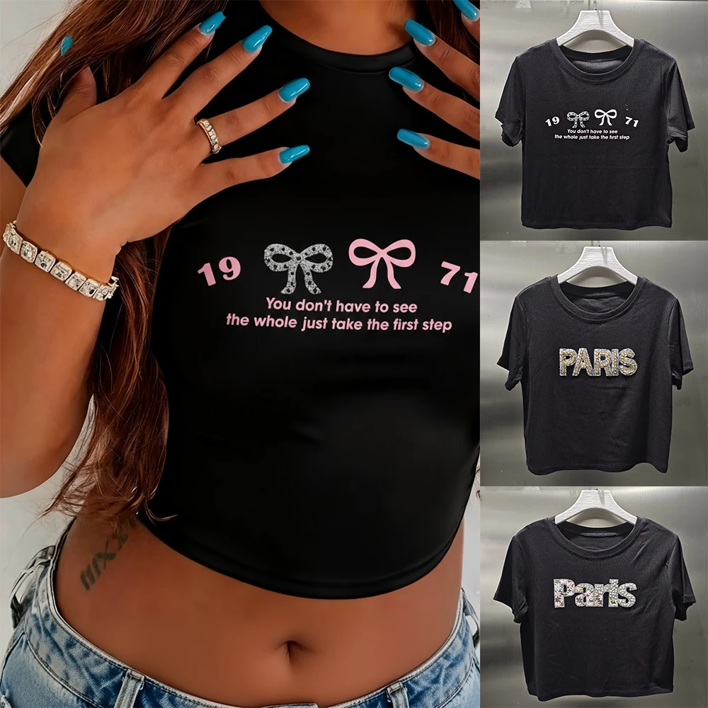LYG New Design Custom Wholesale Summer Graphic Crop Tops Women Regular Fit Sweet Rhinestone Sexy Breathable Eco-Friendly