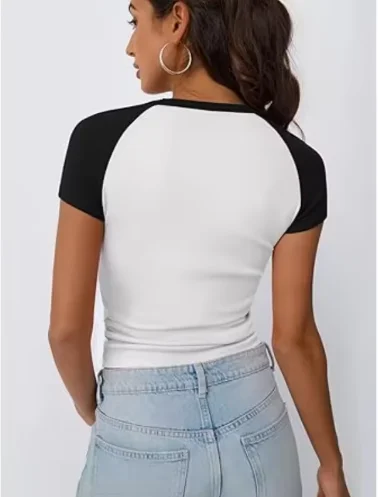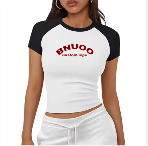 Women's 100% Cotton Crew Neck Summer Ribbed Slim-Fitted Boxy Crop Top Tees Casual Solid Pattern Knitted Fabric