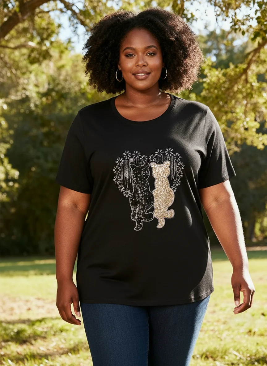 LYG New Design Custom Wholesale Plus Size Women's Oversized T-shirt with Rhinestone Batwing Sleeves Eco-Friendly Spandex/Cotton