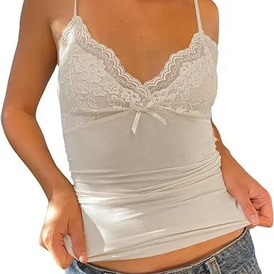 Women's Casual Short-Length V Neck Camisole Backless Lace Patchwork Vest