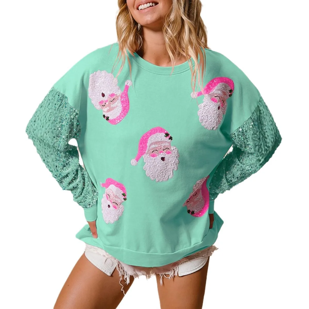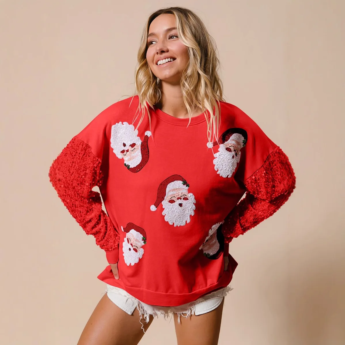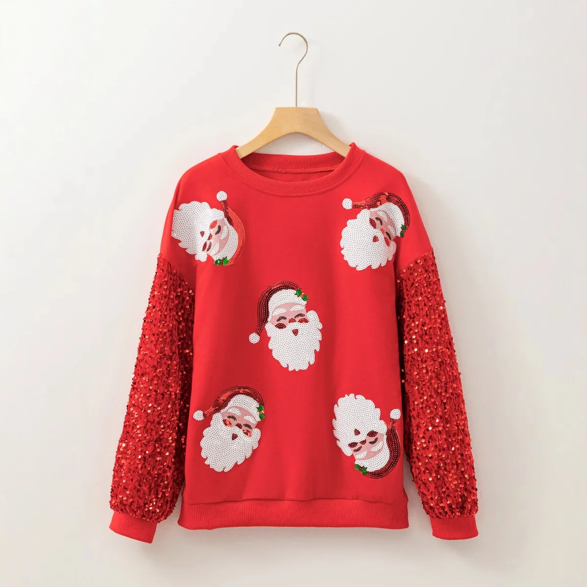Christmas Fashion Crew Neck Custom Embroidery Sequin Hoodies Oversized Hoodies Woman Graphic Hoodies High Quality Hoodies