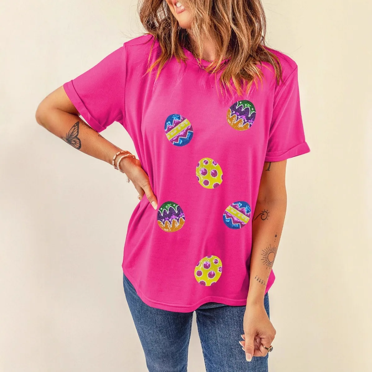 Custom Embroidery Sequin T-Shirt Halloween Oversized Graphic Casual Woman T-Shirts for Women