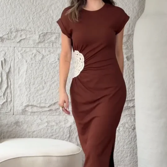 2026 Trending Wholesale Casual Date Fashion Trim Fitted Dress 100% Cotton Eco-Friendly with Natural Waistline