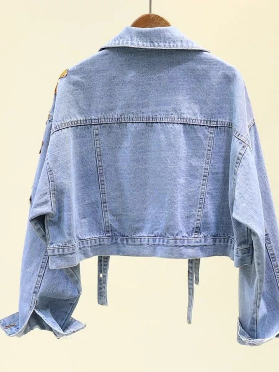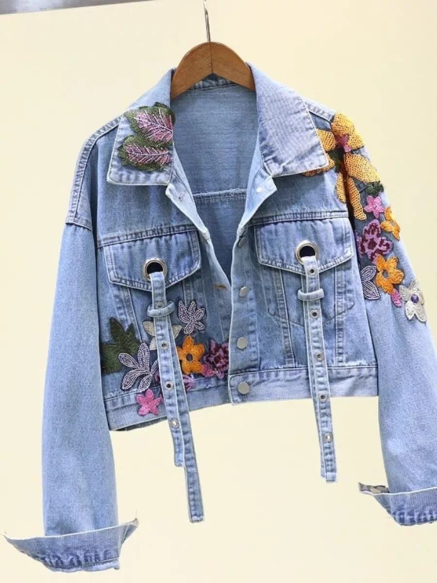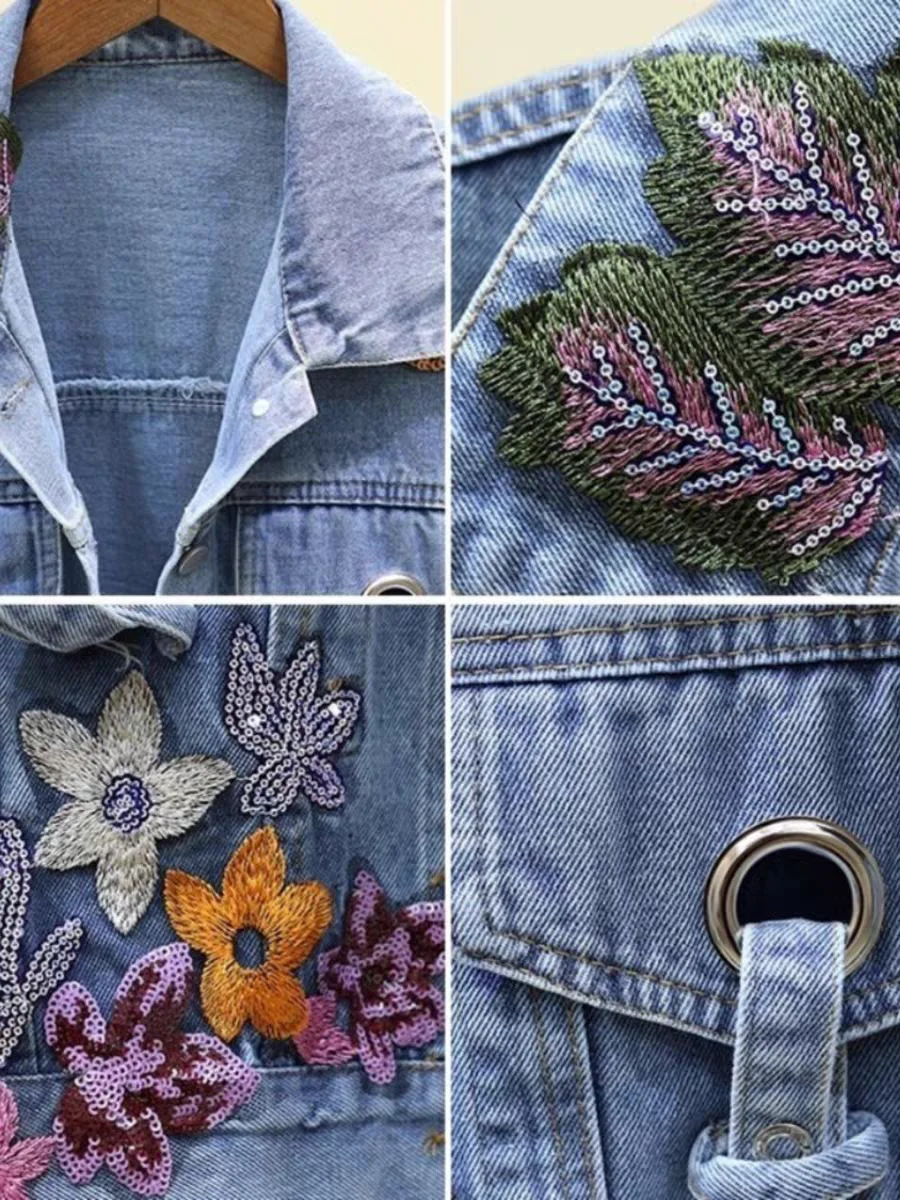 Clothing Manufacturer Heavyweight Denim Jeans Women's Jacket Custom Glitter Embroidery Vintage Ropa De Mujer High Quality Jacket