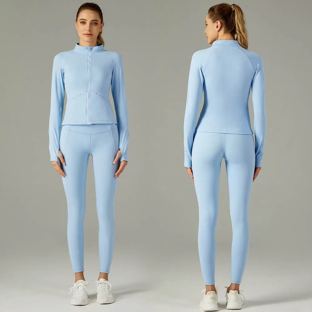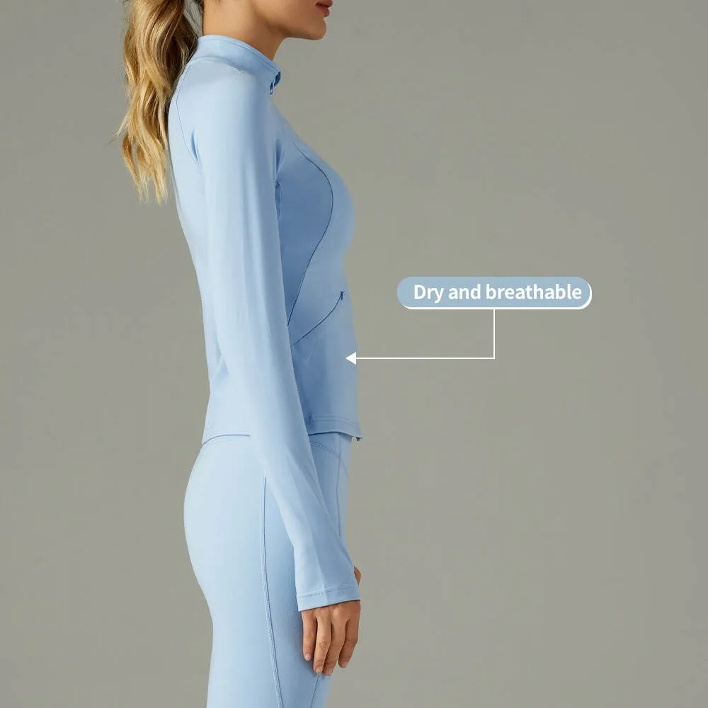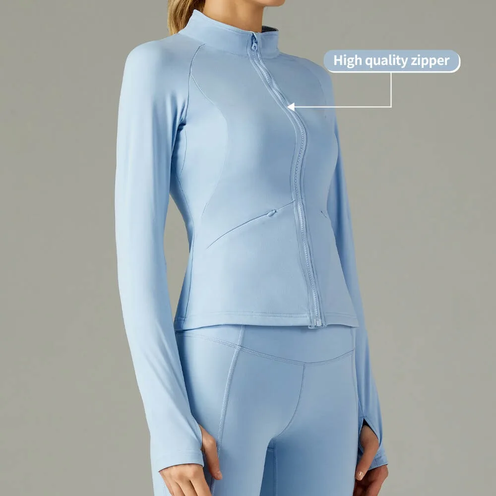 Hot Selling Factory Custom Logo Yoga Jacket Sexy Full Zip Long Sleeve with Solid Pattern