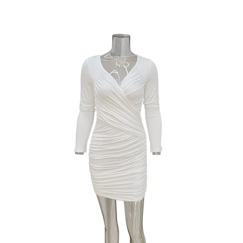 Women's Long Sleeve Irregular Mini Bandage Bodycon Dress Autumn and Winter New Night Club Dress with Ruched Decoration