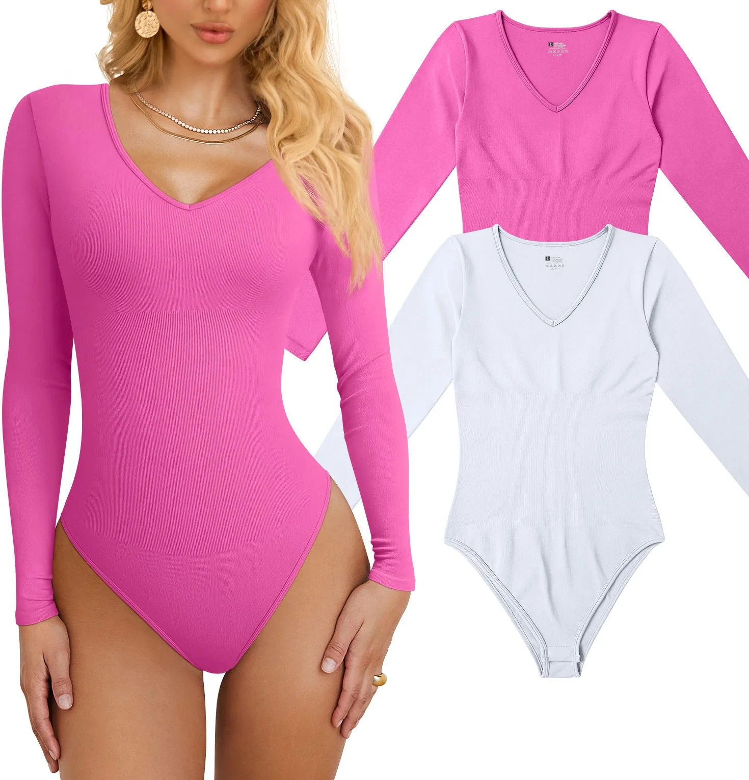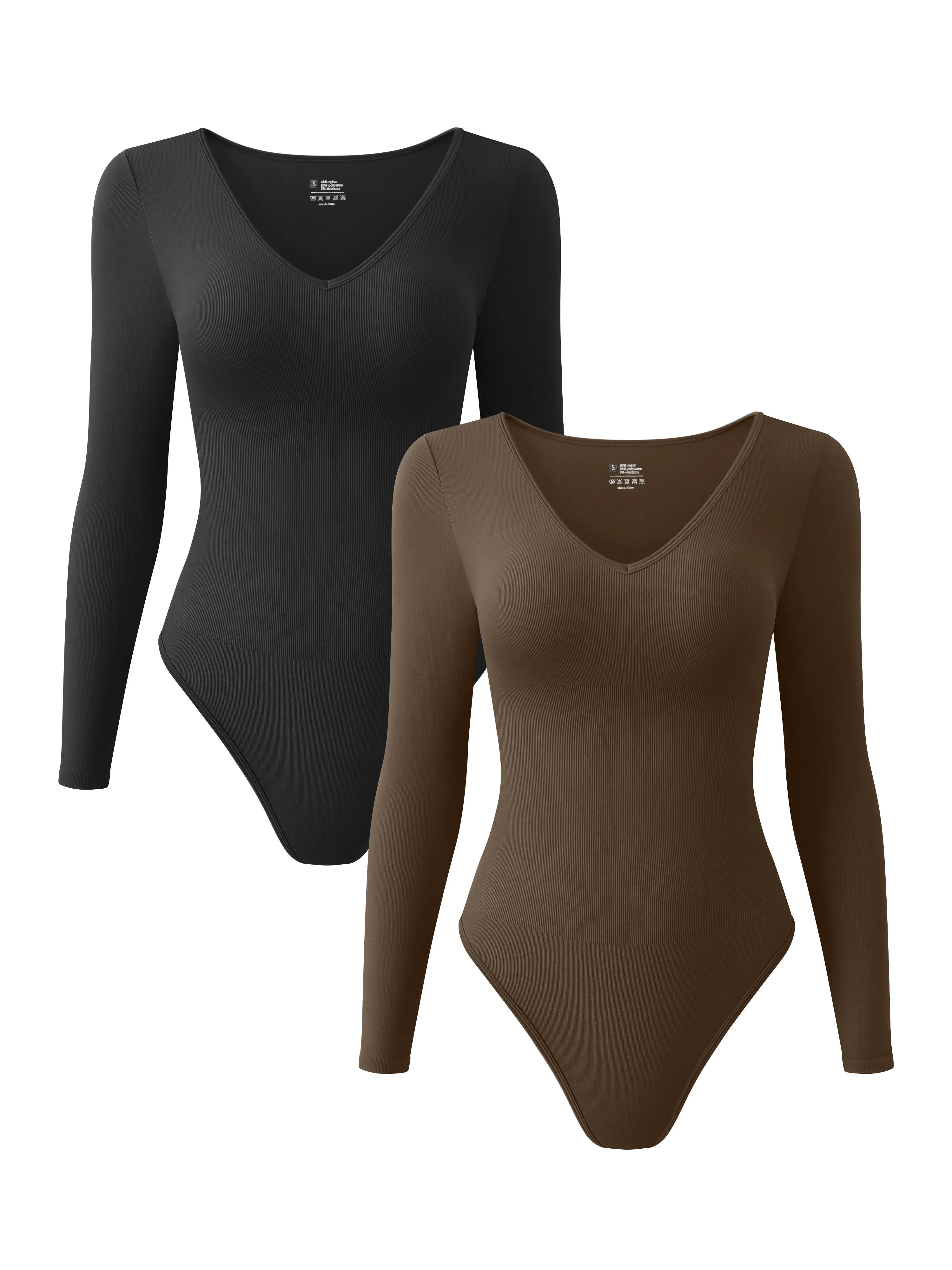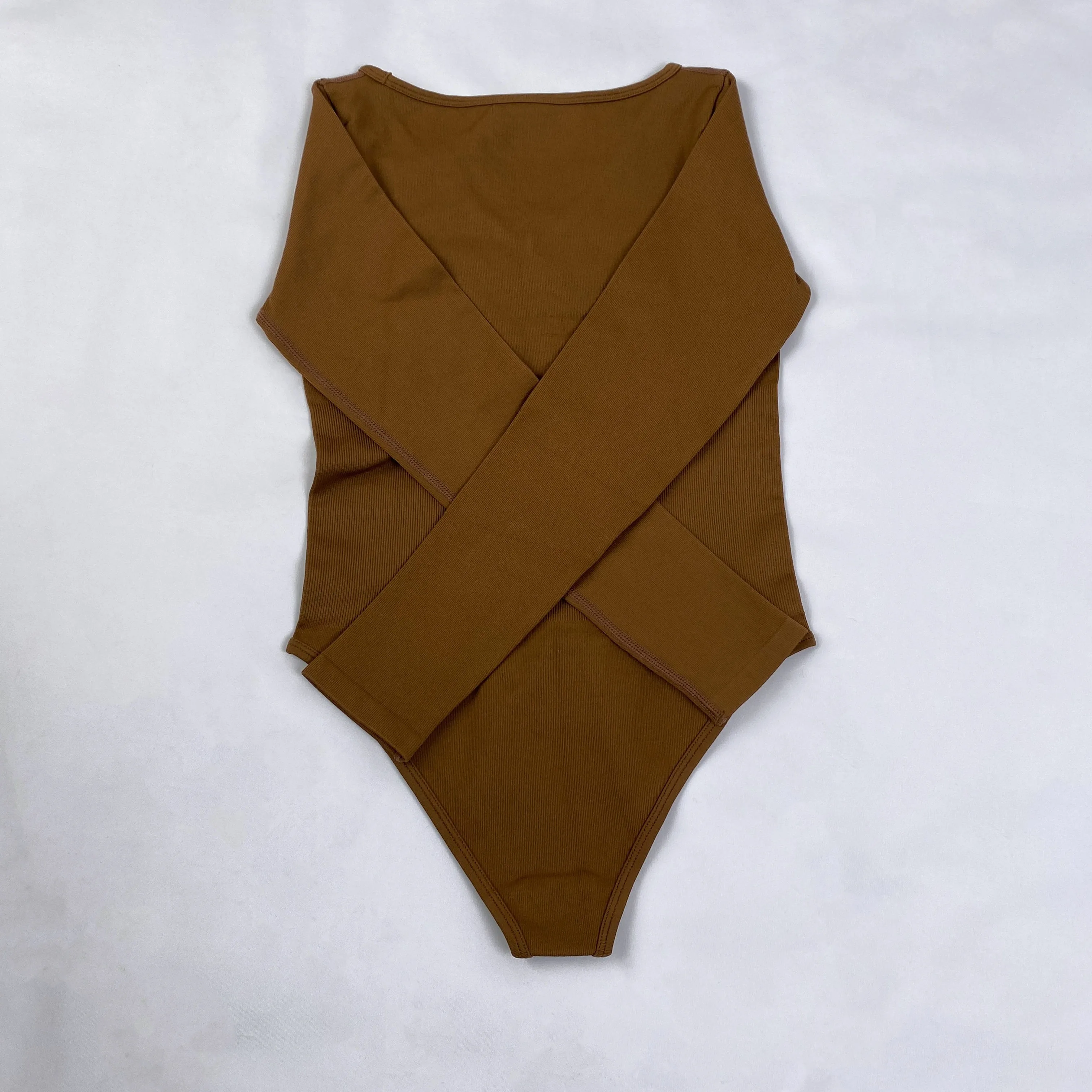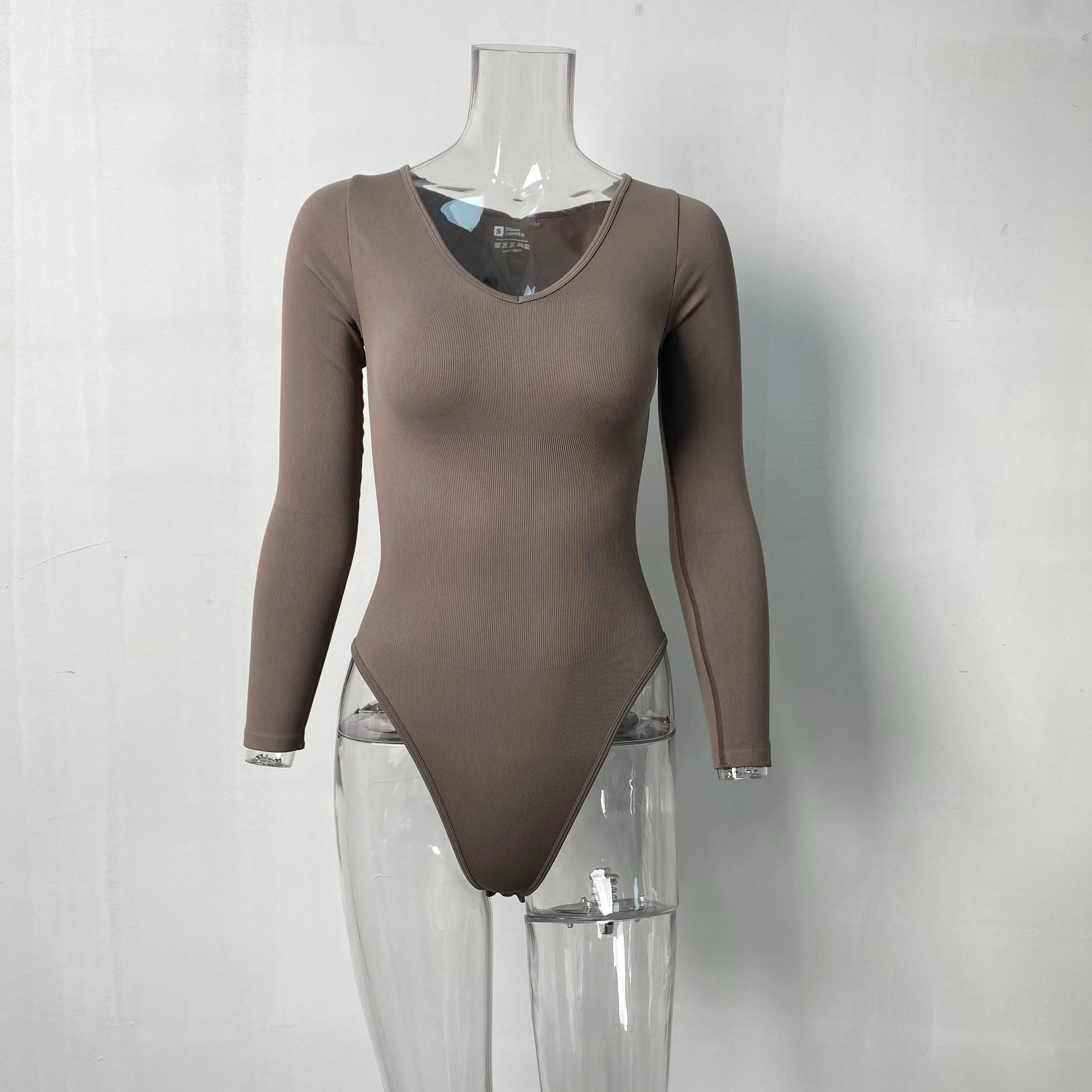 Wholesale Fashion Seamless Long Sleeved V-Neck Women's Sports Bodysuits for Yoga and Parties
