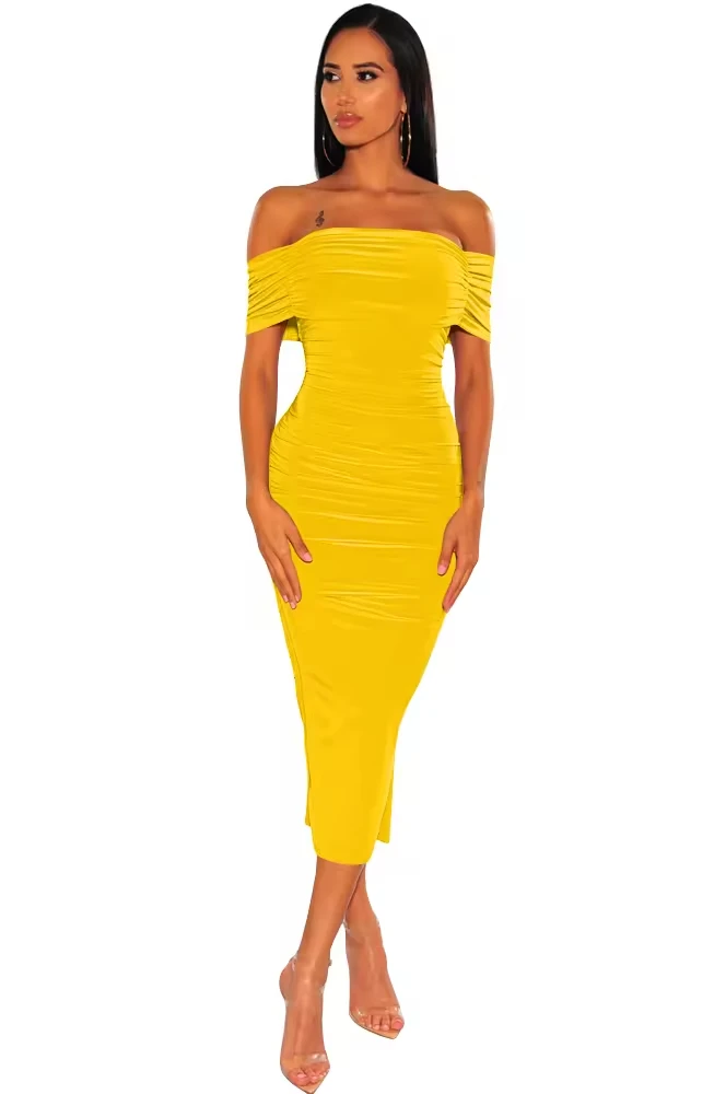 ZYHT 73849 European Wholesale Fashion Casual One Shoulder Ruched Maxi Dress Side Slit Pleated Long Sleeve Dresses for Women