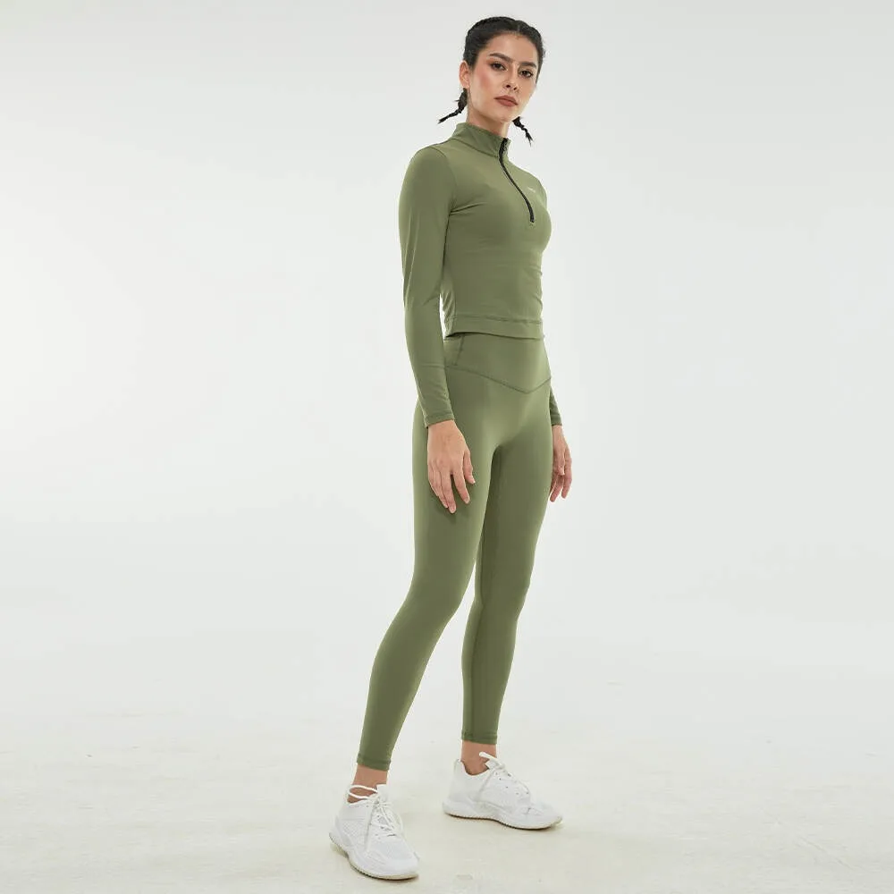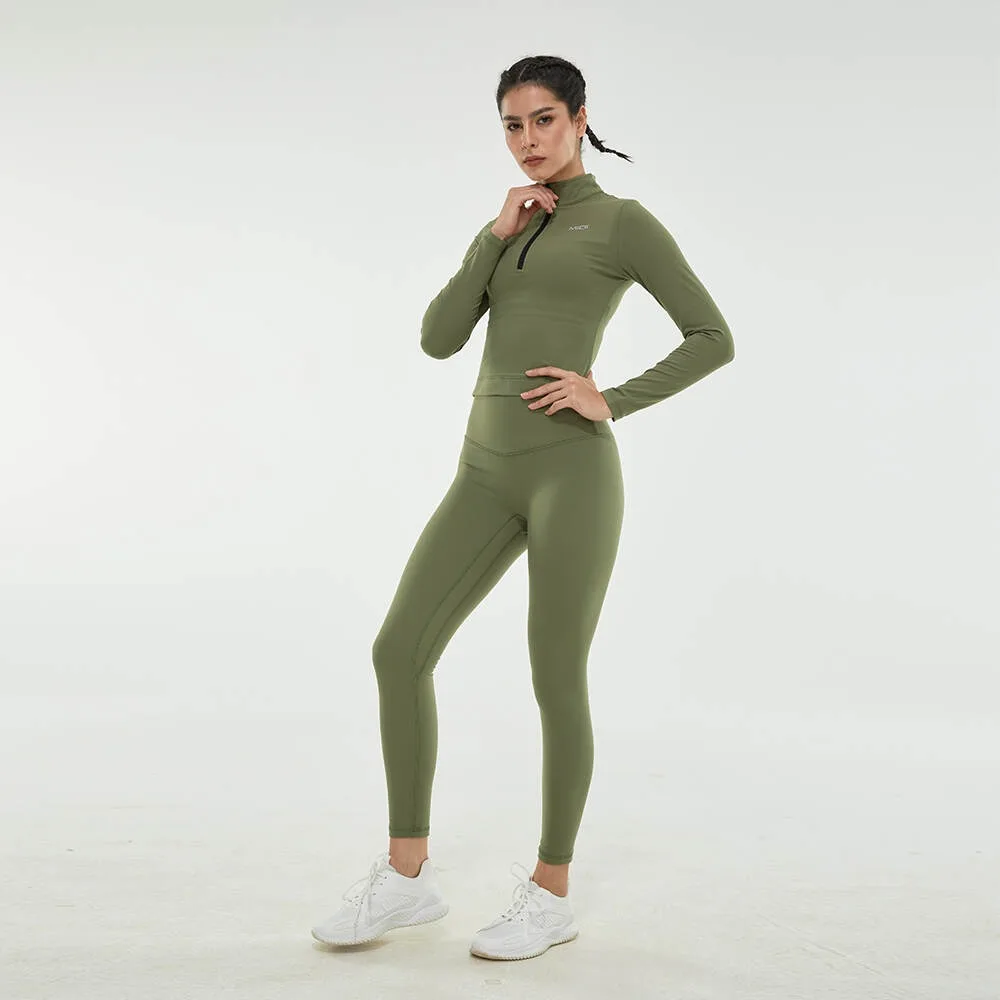 Hot Selling Factory Sexy Solid Yoga Wear Activewear Fitness Set Long Sleeves Jacket Leggings Front Custom Logo