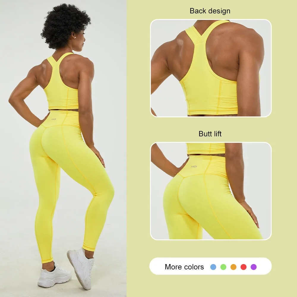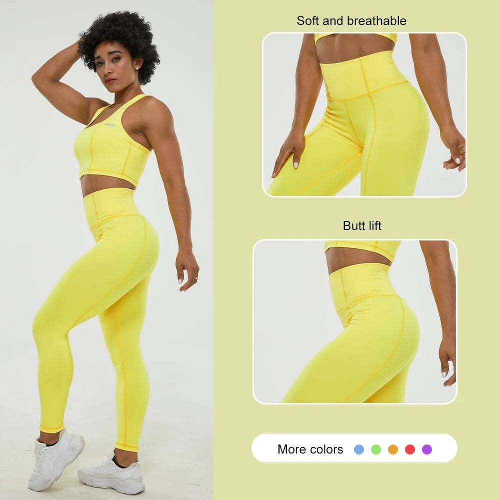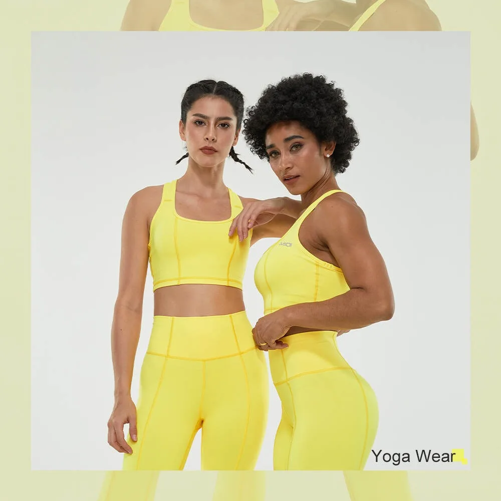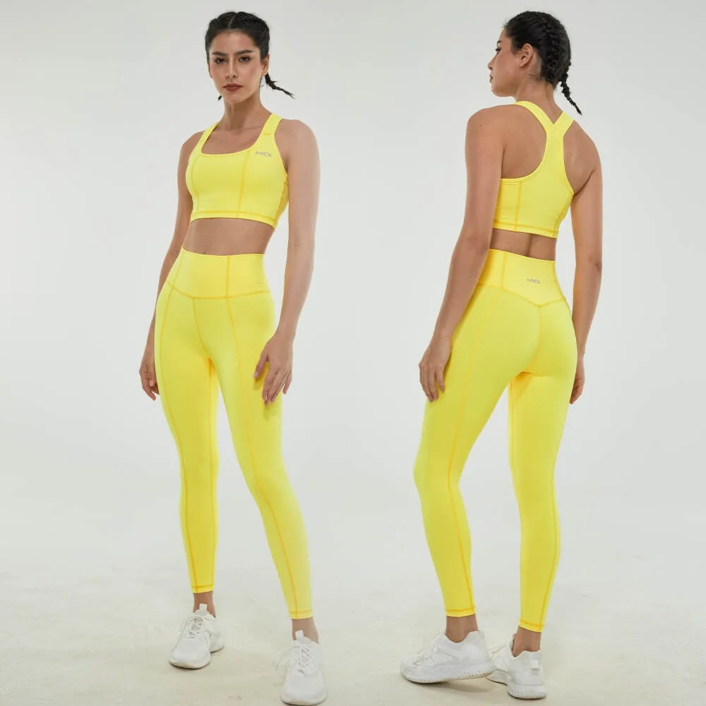 Hot Selling Factory Custom Logo Yoga Wear Activewear Fitness Set Sexy Sports Bra and Leggings with Front Logo Solid Pattern